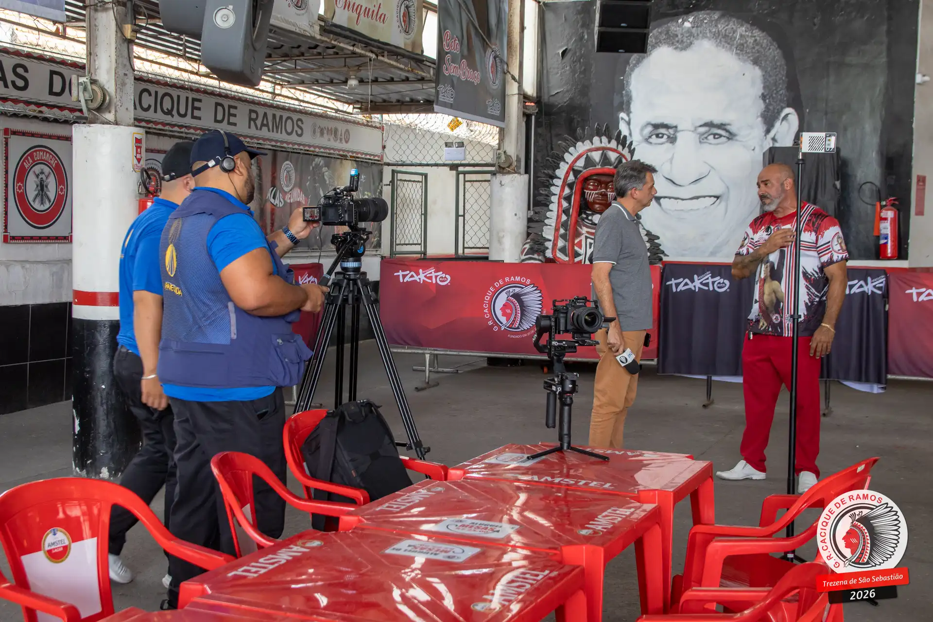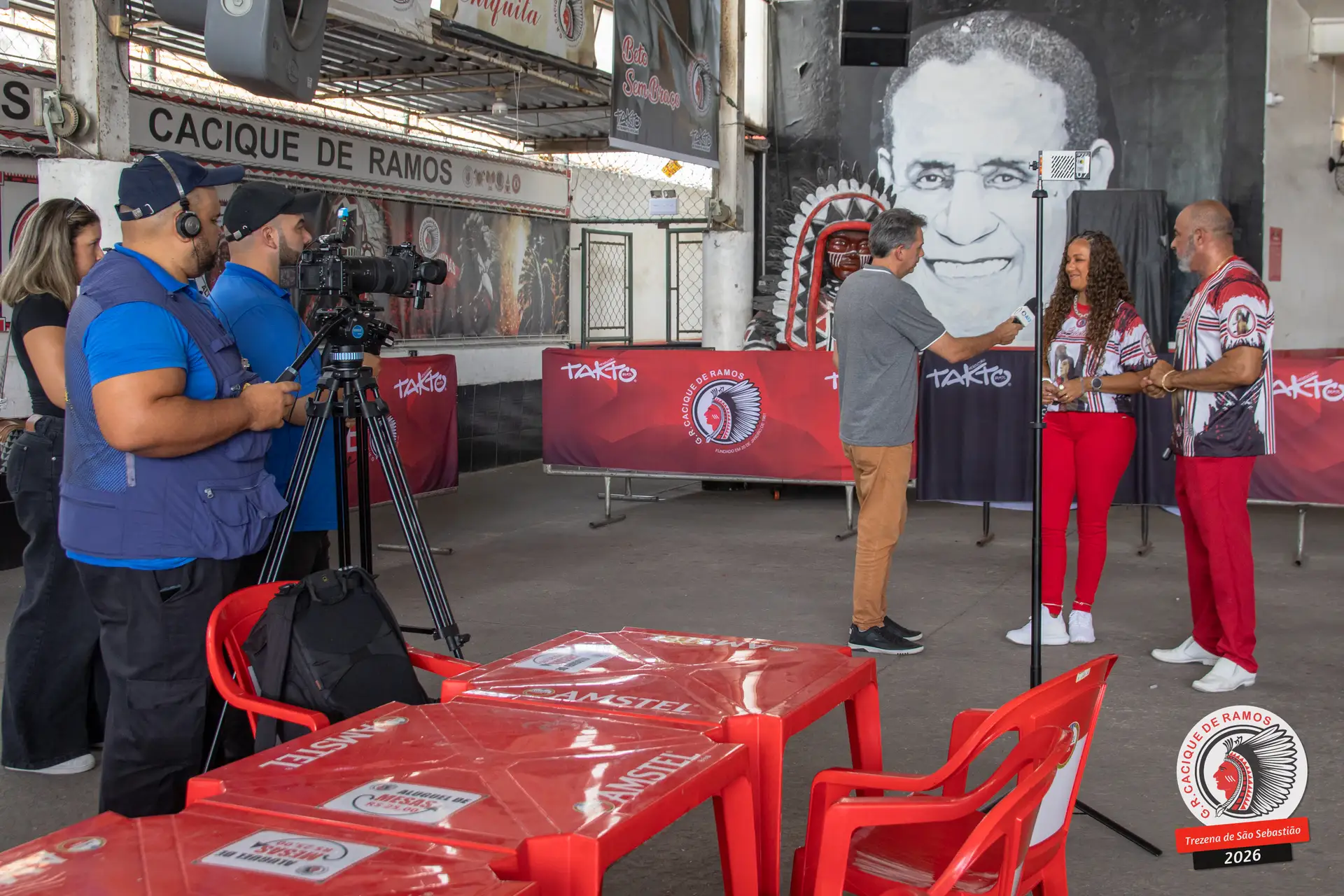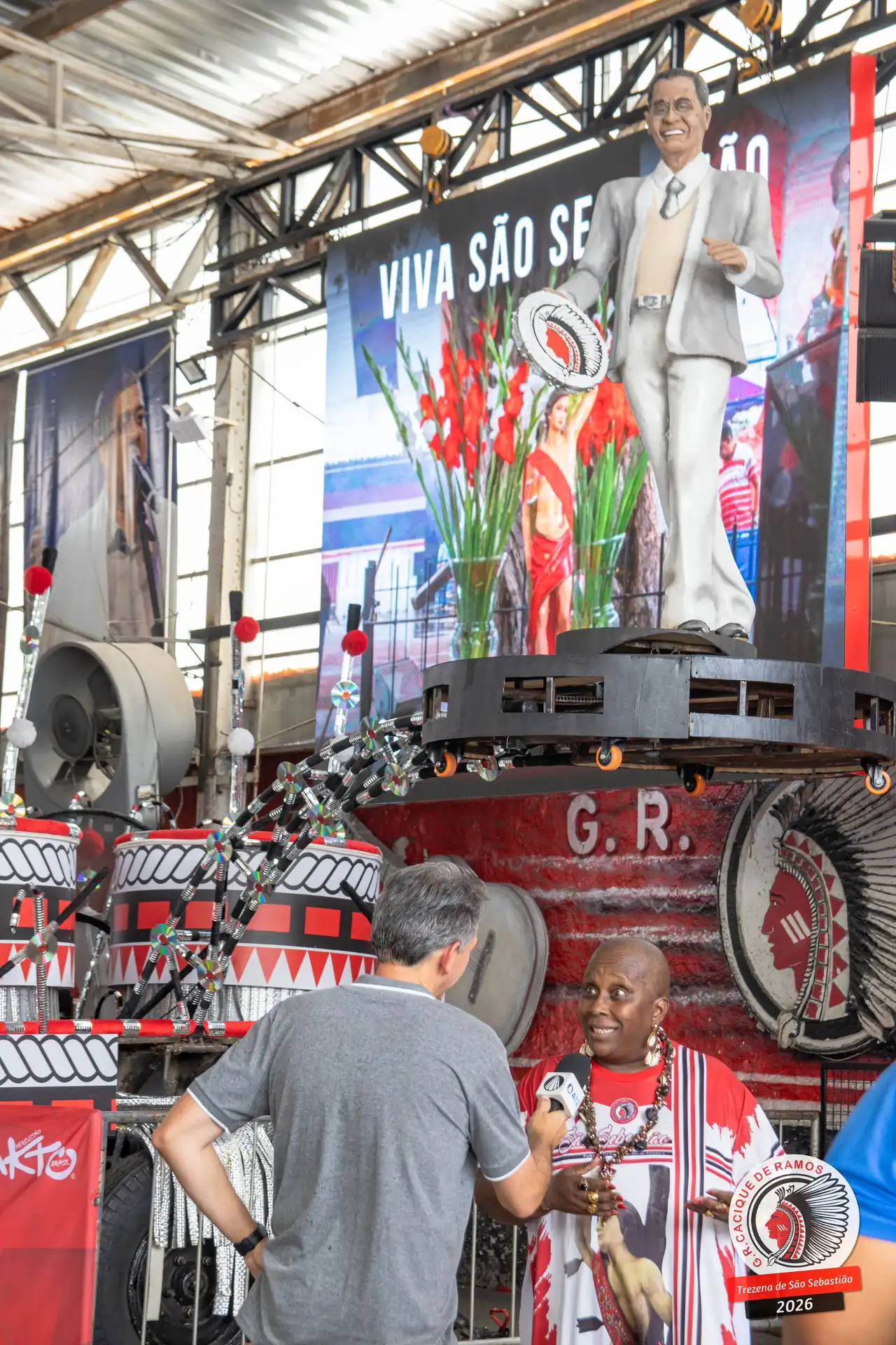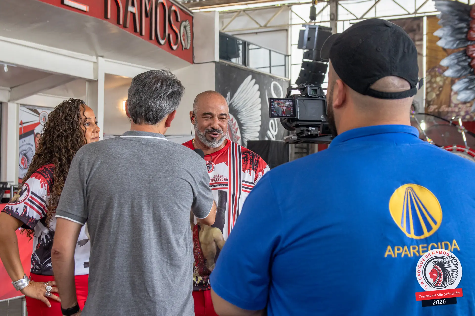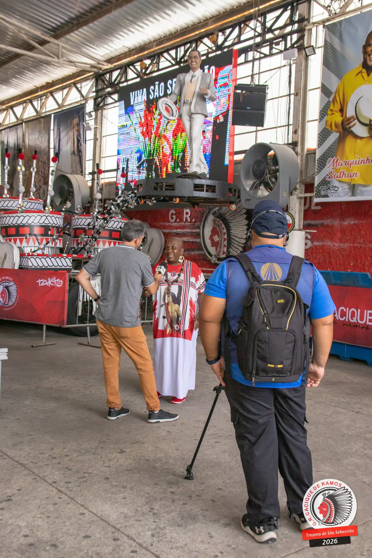 Foram entrevistados o vice-presidente Márcio Nascimento e Christian Kelly, além do carnavalesco André Cezari, do pintor de arte Jorge Costa, do historiador Walter Pereira Jr., do intérprete oficial do bloco, Junior Nova Geração, do mestre da Bateria Tamarindo de Ouro, Mestre Xula, e de Margarete Mendes, única voz feminina do carro de som do Cacique de Ramos.