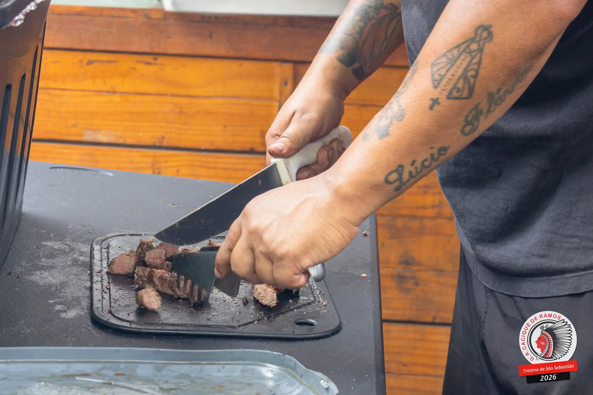 Após a solenidade religiosa, os presentes partilharam um churrasco completo preparado pela equipe de Fábio Portuga, responsável pela cozinha caciqueana, momento de confraternização que estende a celebração para além do rito litúrgico. O almoço é outra tradição que envolve este encontro.