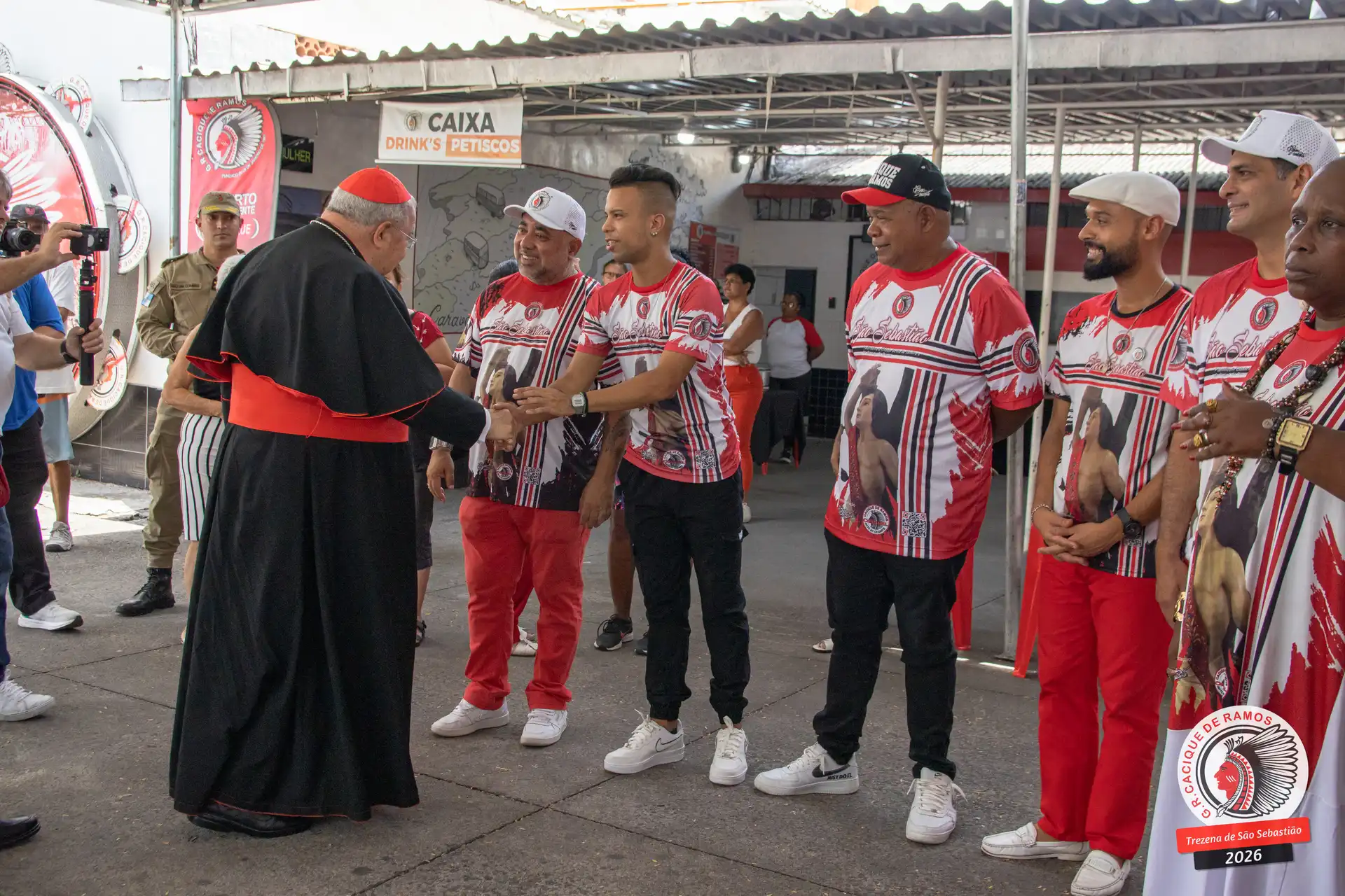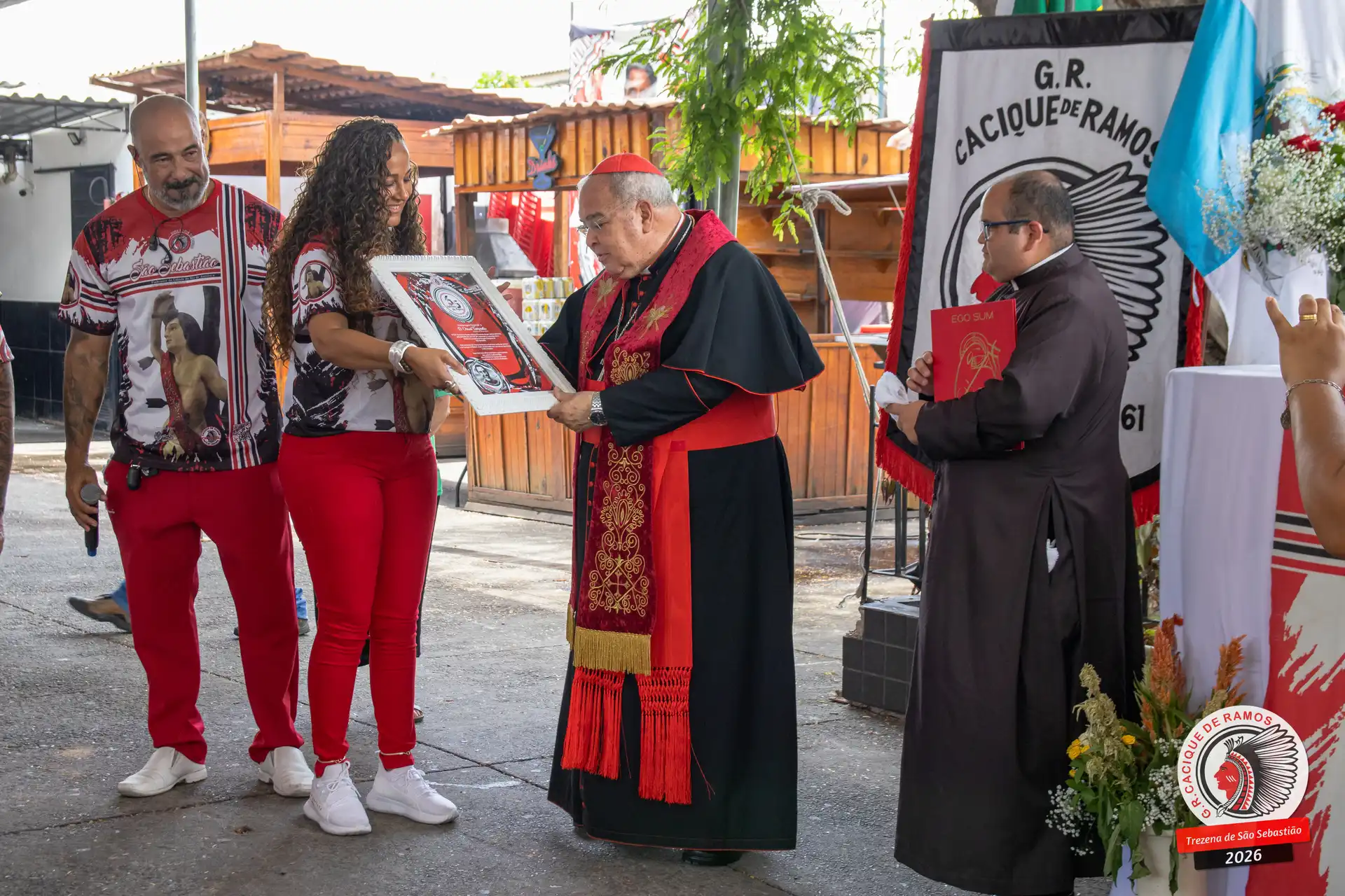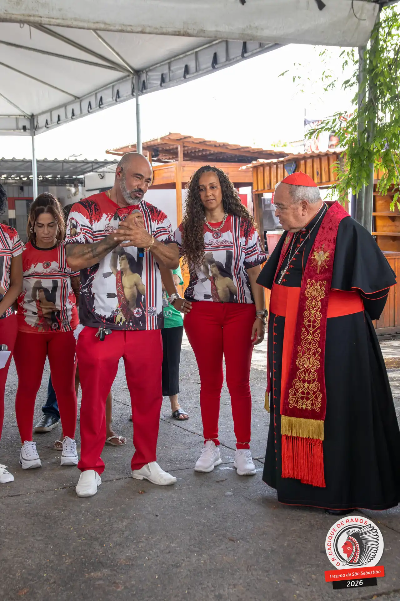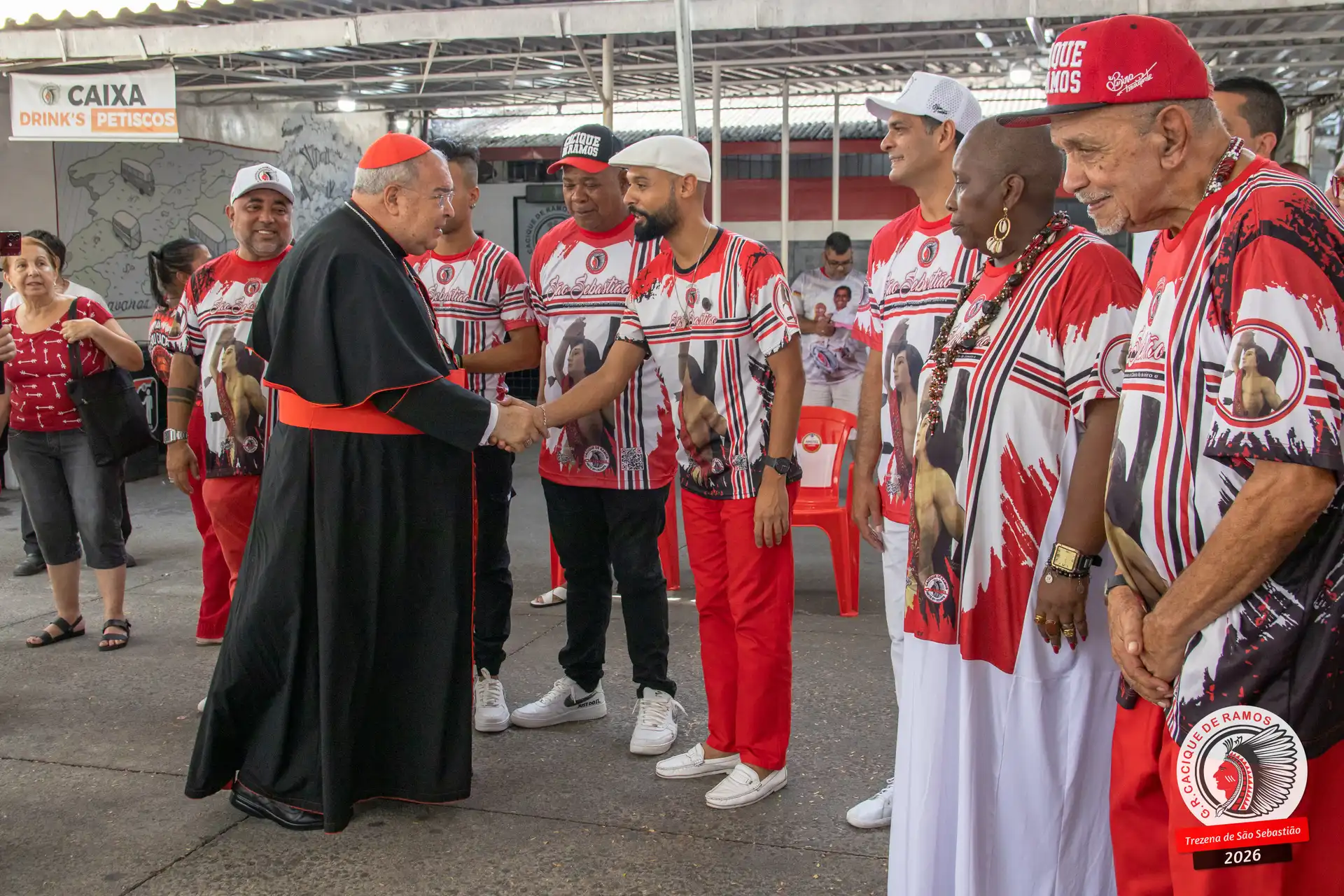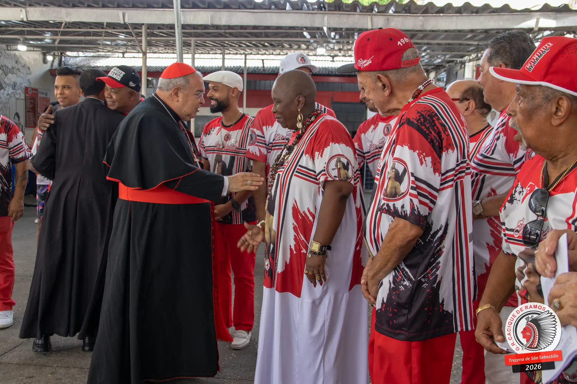 A semana de aniversário do Grêmio Recreativo Cacique de Ramos, em 2026, começou no sábado, 17 de janeiro, durante o 11º dia da Trezena de São Sebastião. O pátio das Tamarineiras foi o cenário da celebração que reuniu diretoria, baluartes, componentes e convidados em torno da bênção conduzida pelo Cardeal Arcebispo do Rio de Janeiro, Dom Orani João Tempesta, em veneração à imagem peregrina do padroeiro da cidade.
