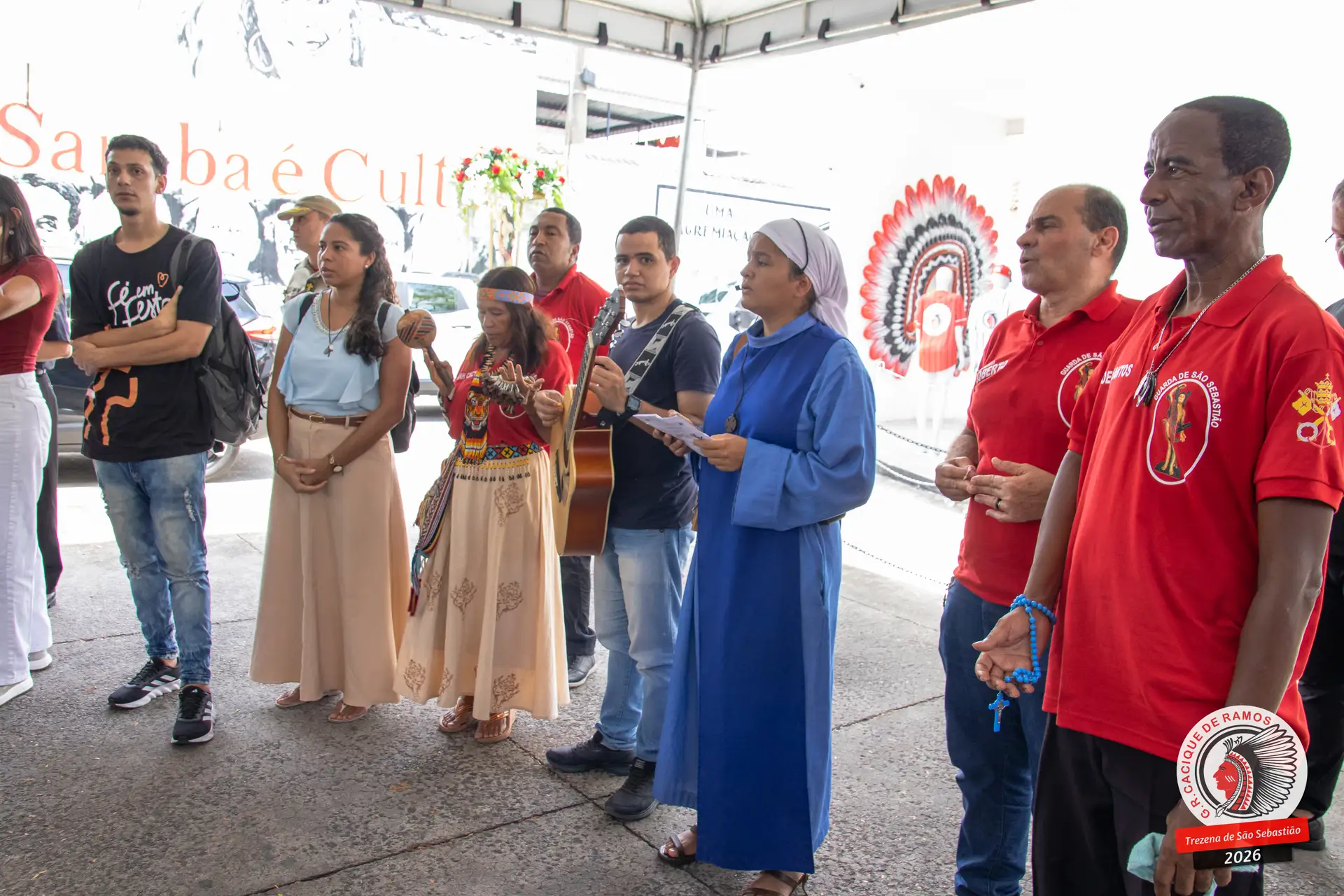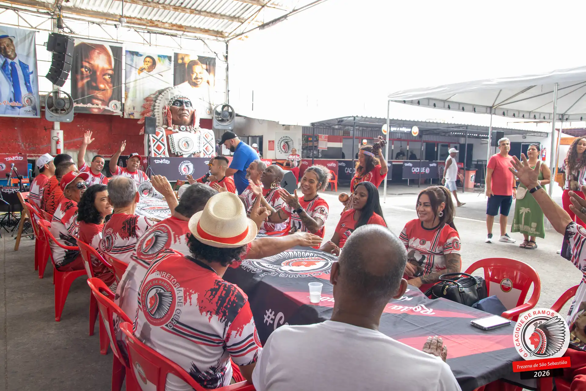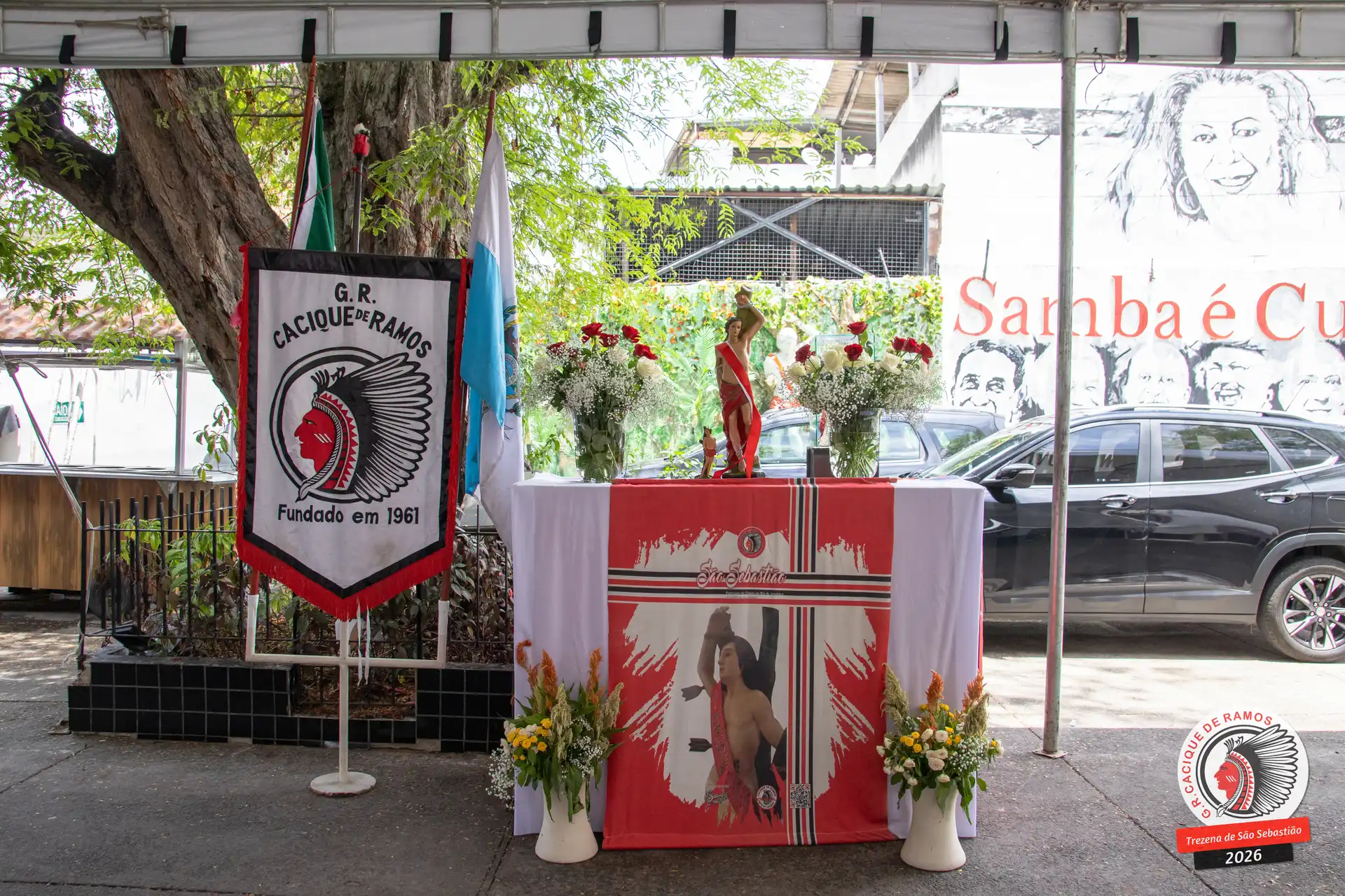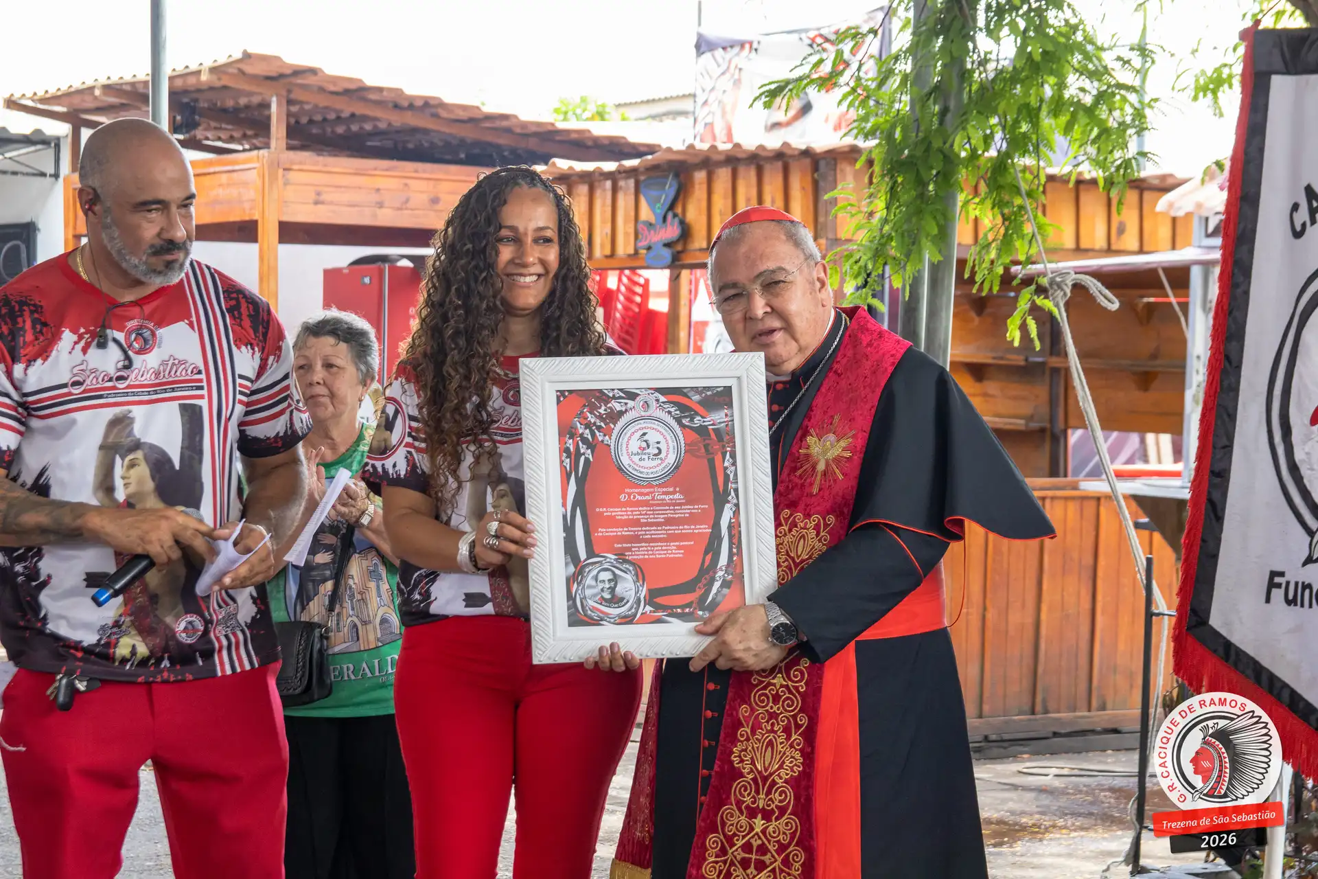 A semana de aniversário do Grêmio Recreativo Cacique de Ramos, em 2026, começou no sábado, 17 de janeiro, durante o 11º dia da Trezena de São Sebastião. O pátio das Tamarineiras foi o cenário da celebração que reuniu diretoria, baluartes, componentes e convidados em torno da bênção conduzida pelo Cardeal Arcebispo do Rio de Janeiro, Dom Orani João Tempesta, em veneração à imagem peregrina do padroeiro da cidade.