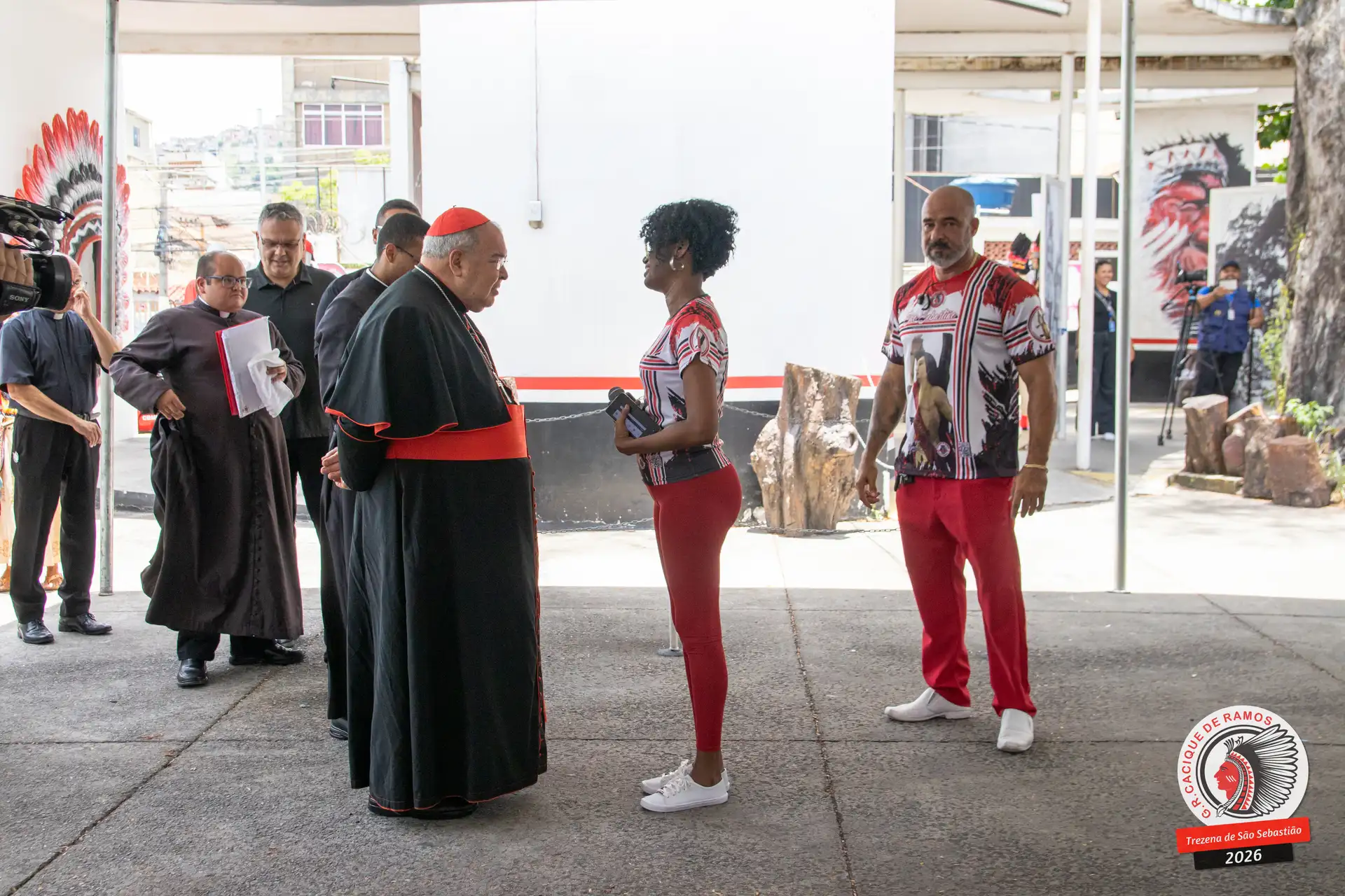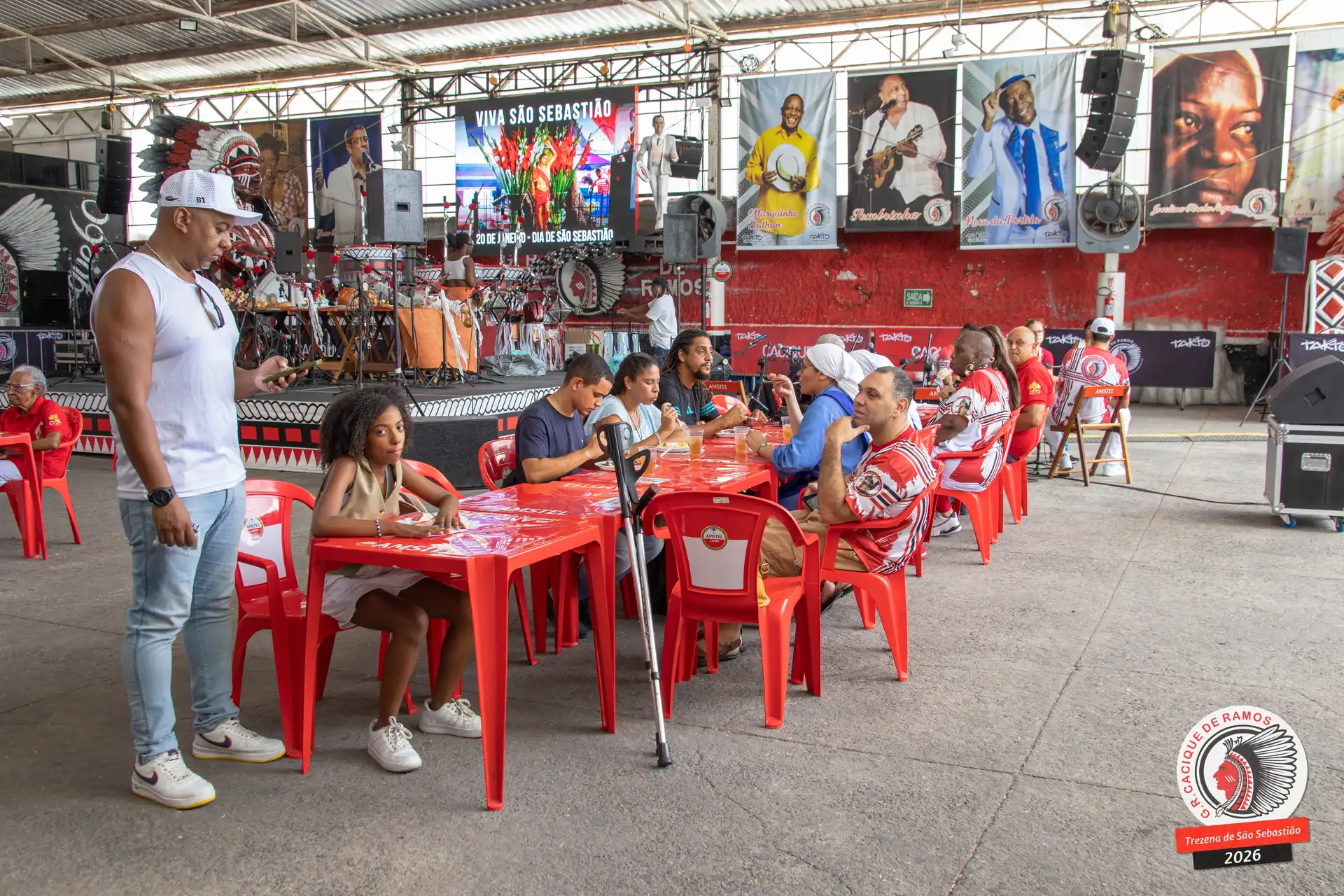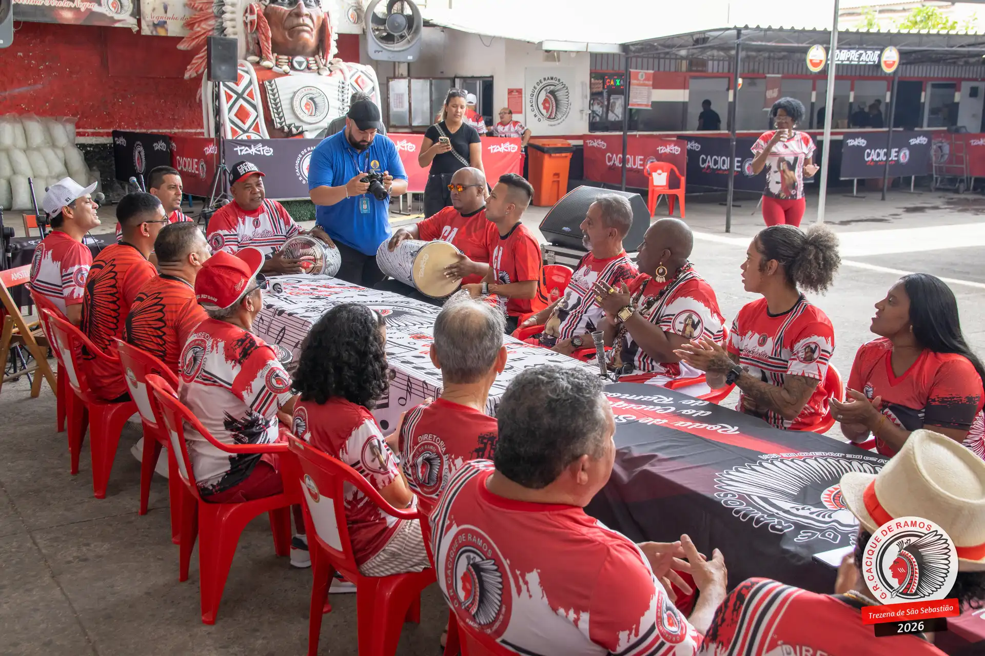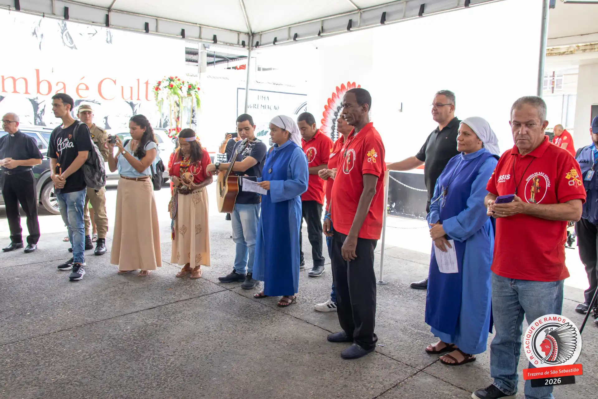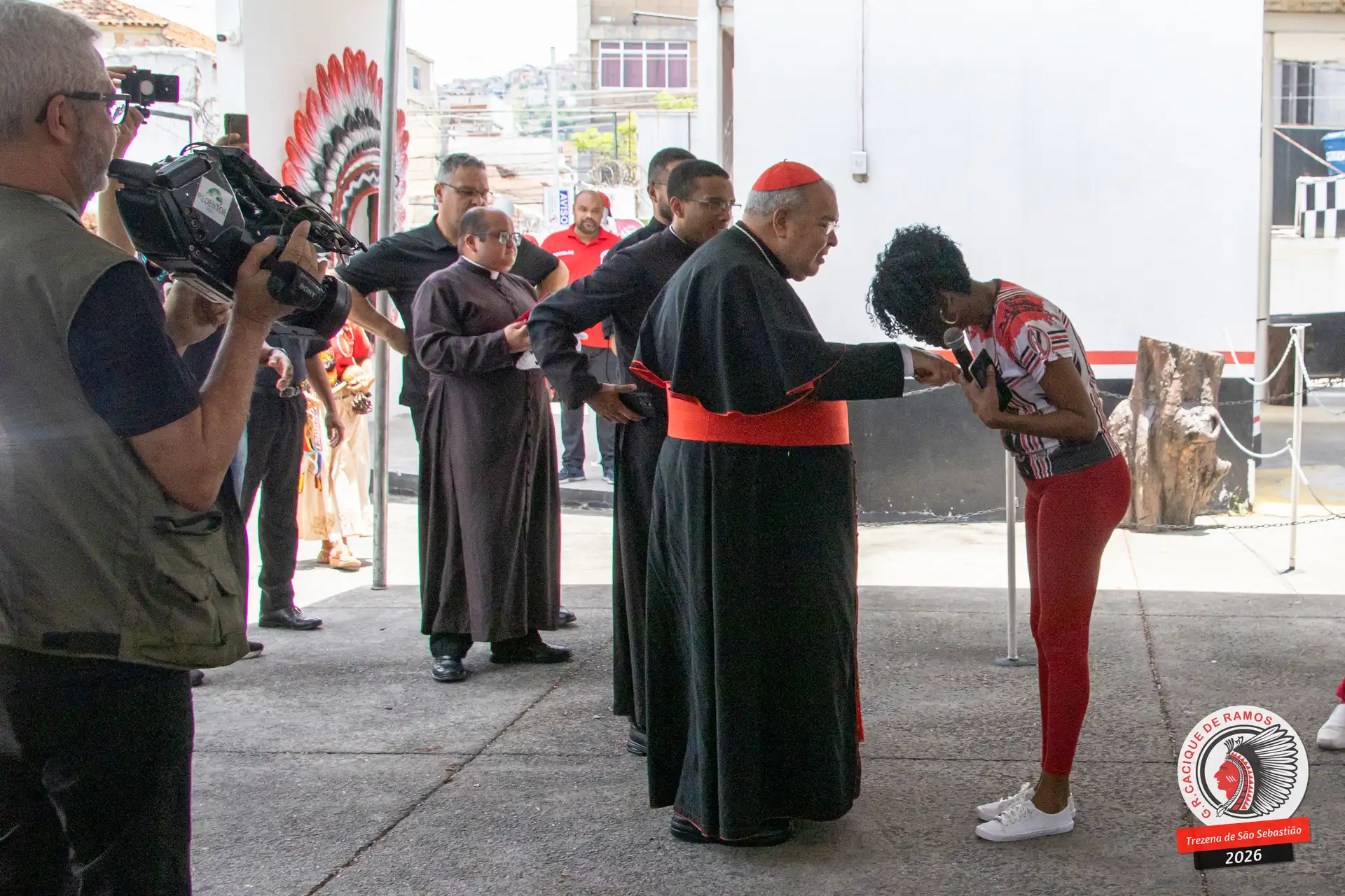 A semana de aniversário do Grêmio Recreativo Cacique de Ramos, em 2026, começou no sábado, 17 de janeiro, durante o 11º dia da Trezena de São Sebastião. O pátio das Tamarineiras foi o cenário da celebração que reuniu diretoria, baluartes, componentes e convidados em torno da bênção conduzida pelo Cardeal Arcebispo do Rio de Janeiro, Dom Orani João Tempesta, em veneração à imagem peregrina do padroeiro da cidade.