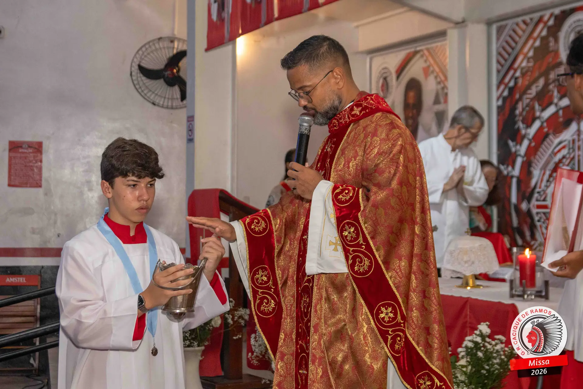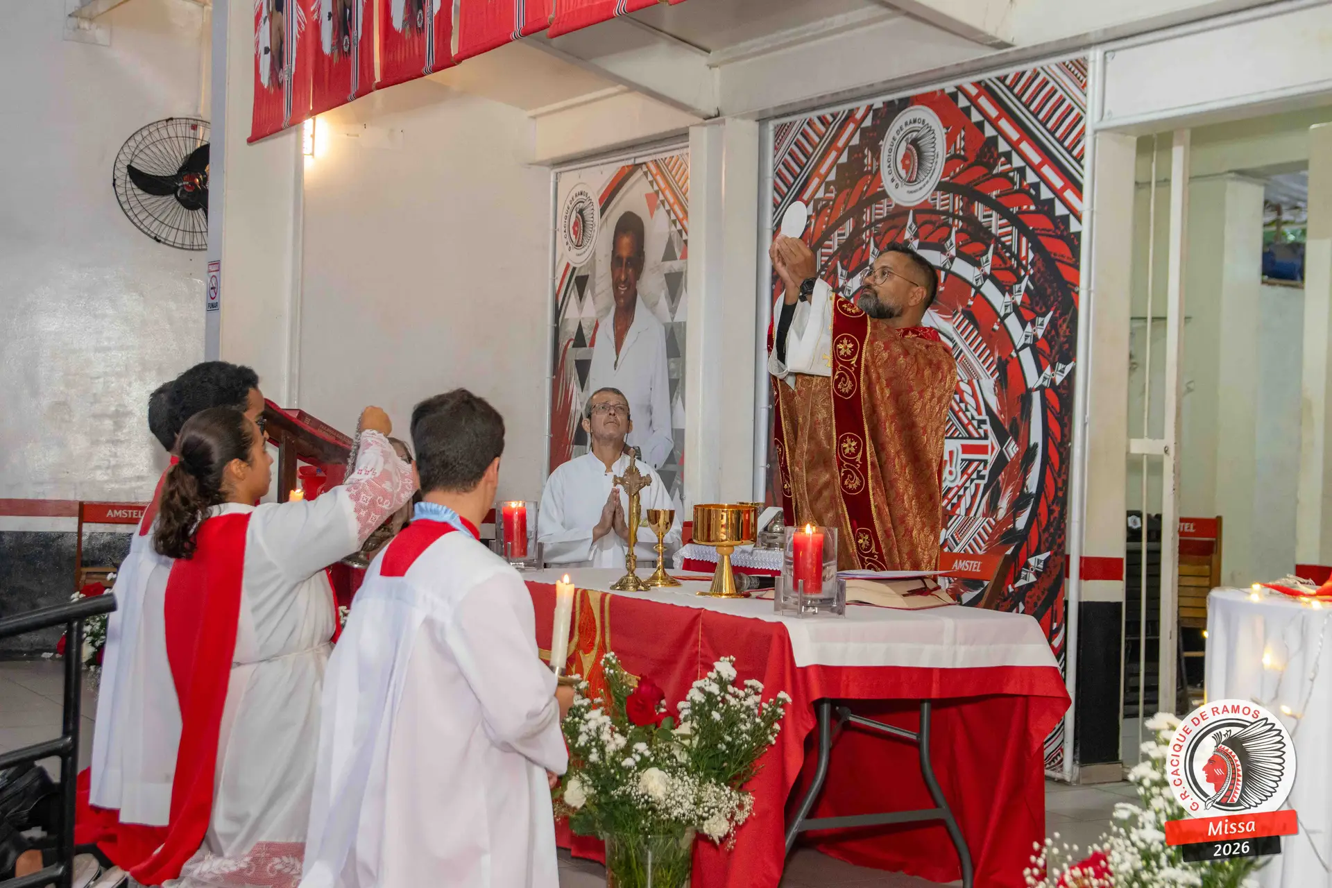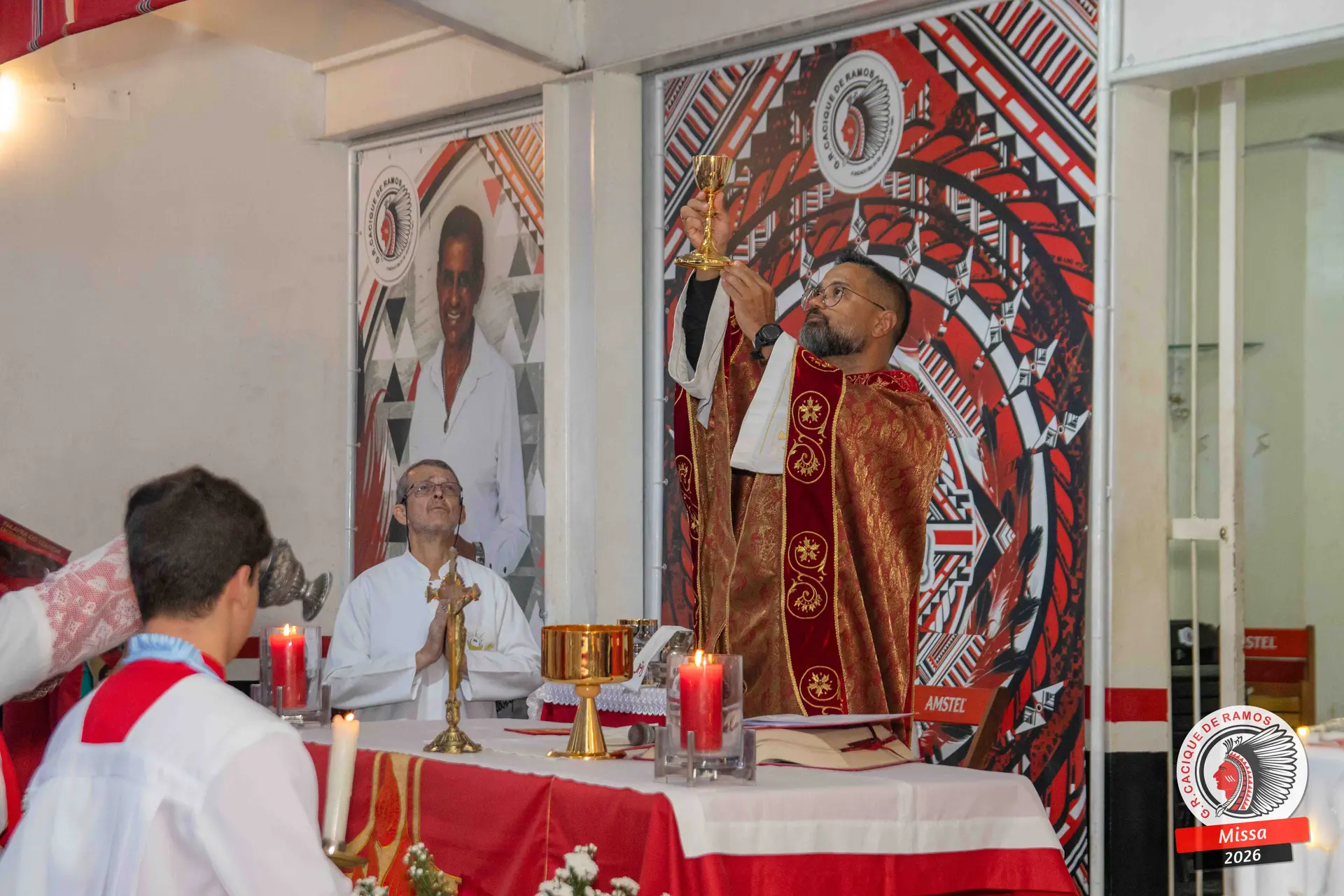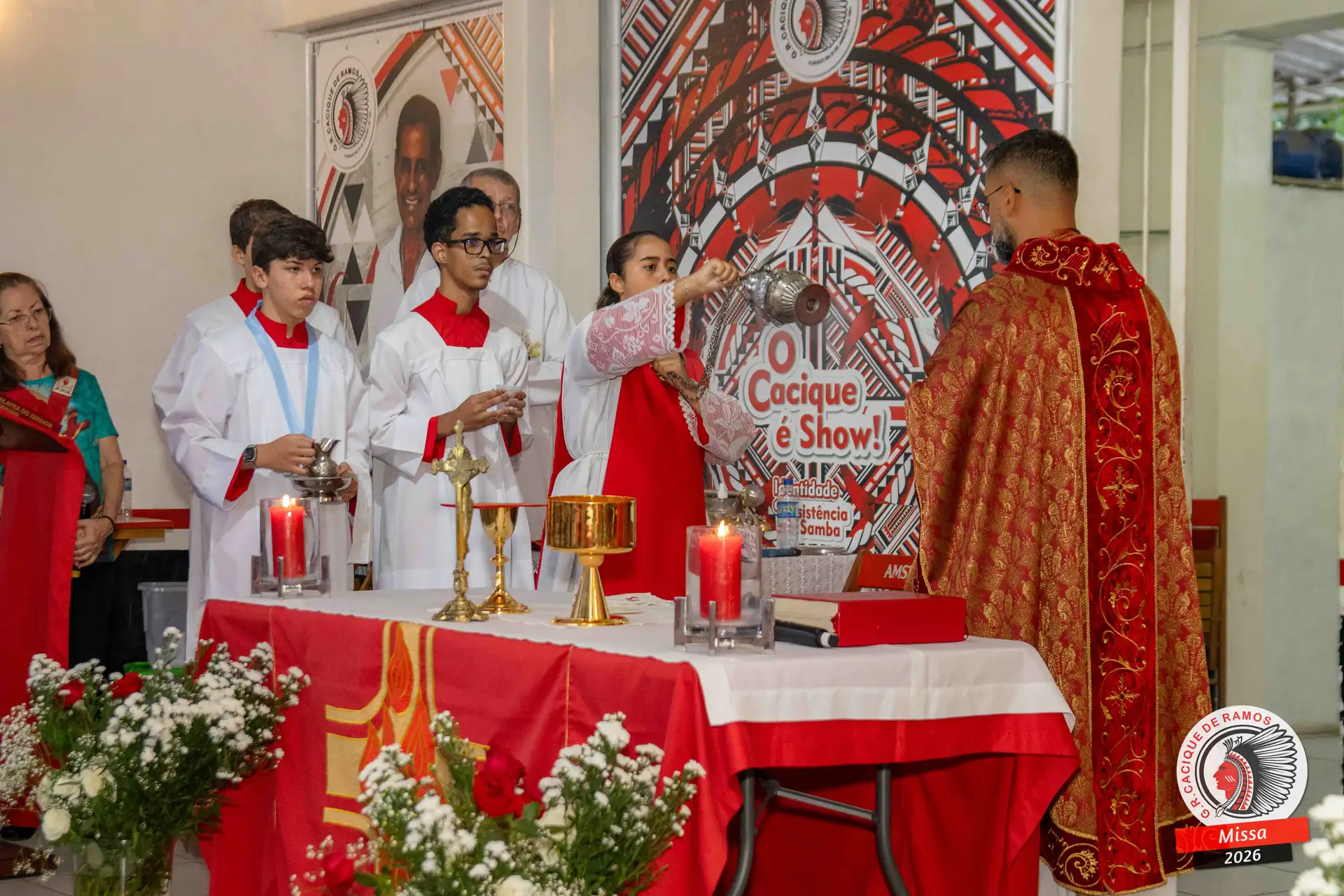 As faixas e insígnias da Corte do Carnaval do bloco foram benzidas, assim como instrumentos da Bateria Tamarindo de Ouro e do grupo Caciqueando, a camisa do grupo Quintal do Cacique e o microfone da apresentadora Nayra Cezari, bem como o pavilhão da Unidos de Vila Santa Tereza e sua diretoria, capitaneada pela presidente Patrícia Drumond. A presidente do Cacique de Ramos devolveu os pertences a seus componentes após a bênção e os parabéns cantados por todos.