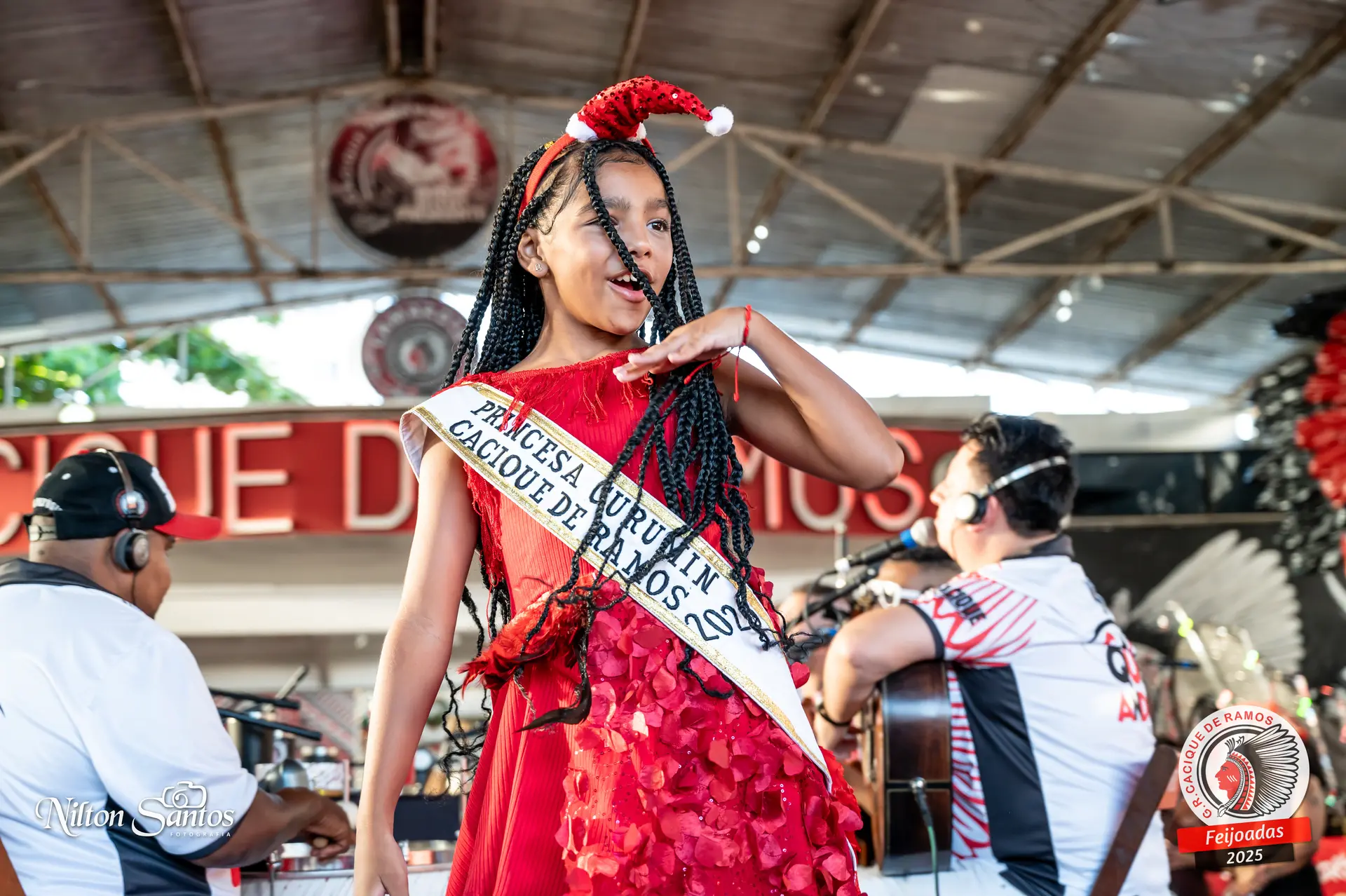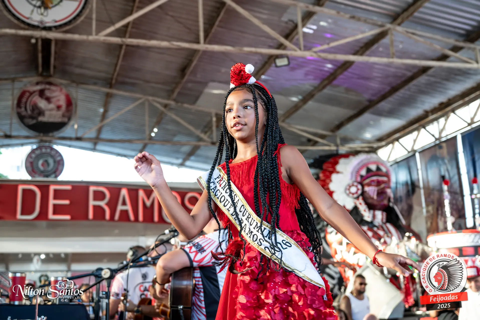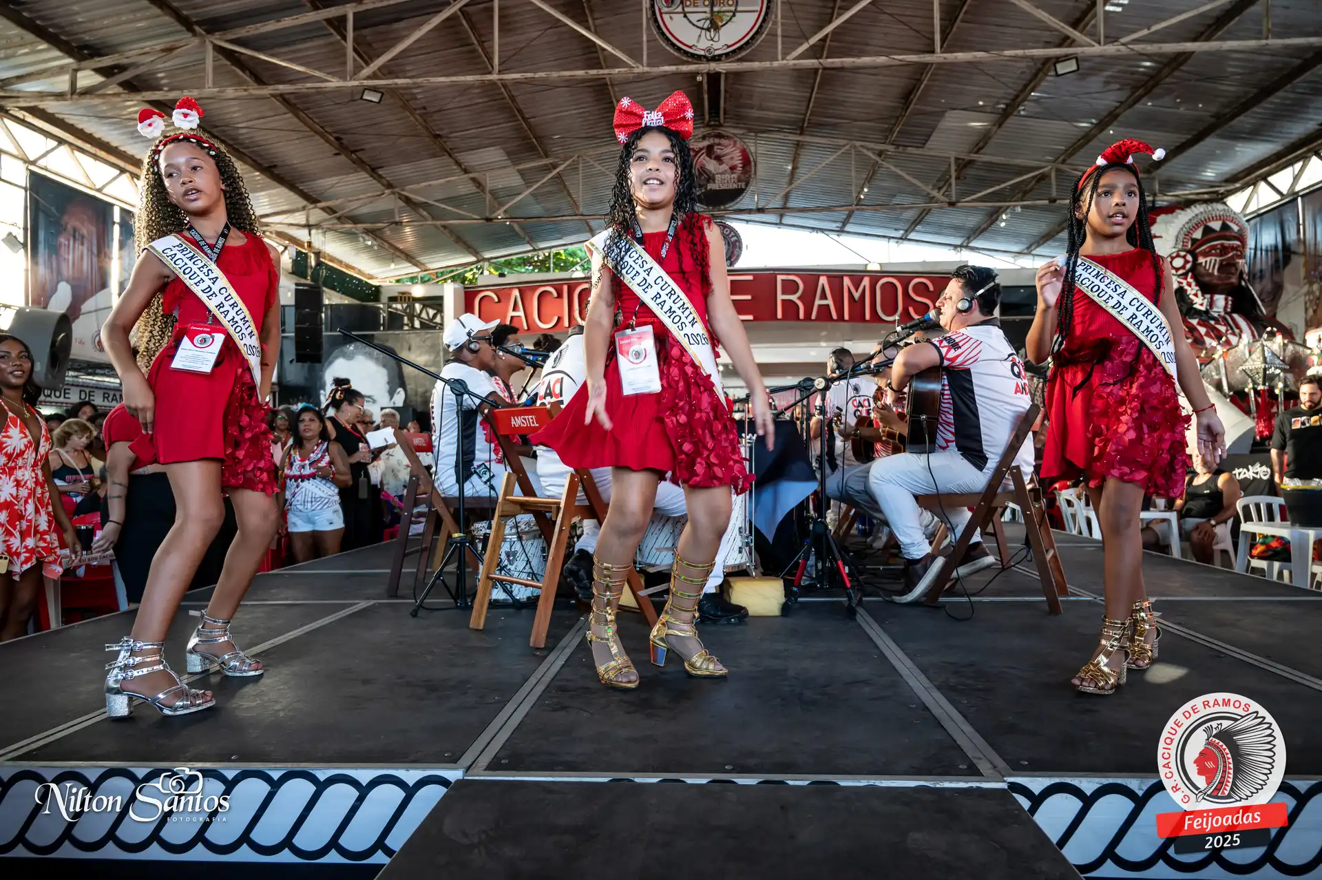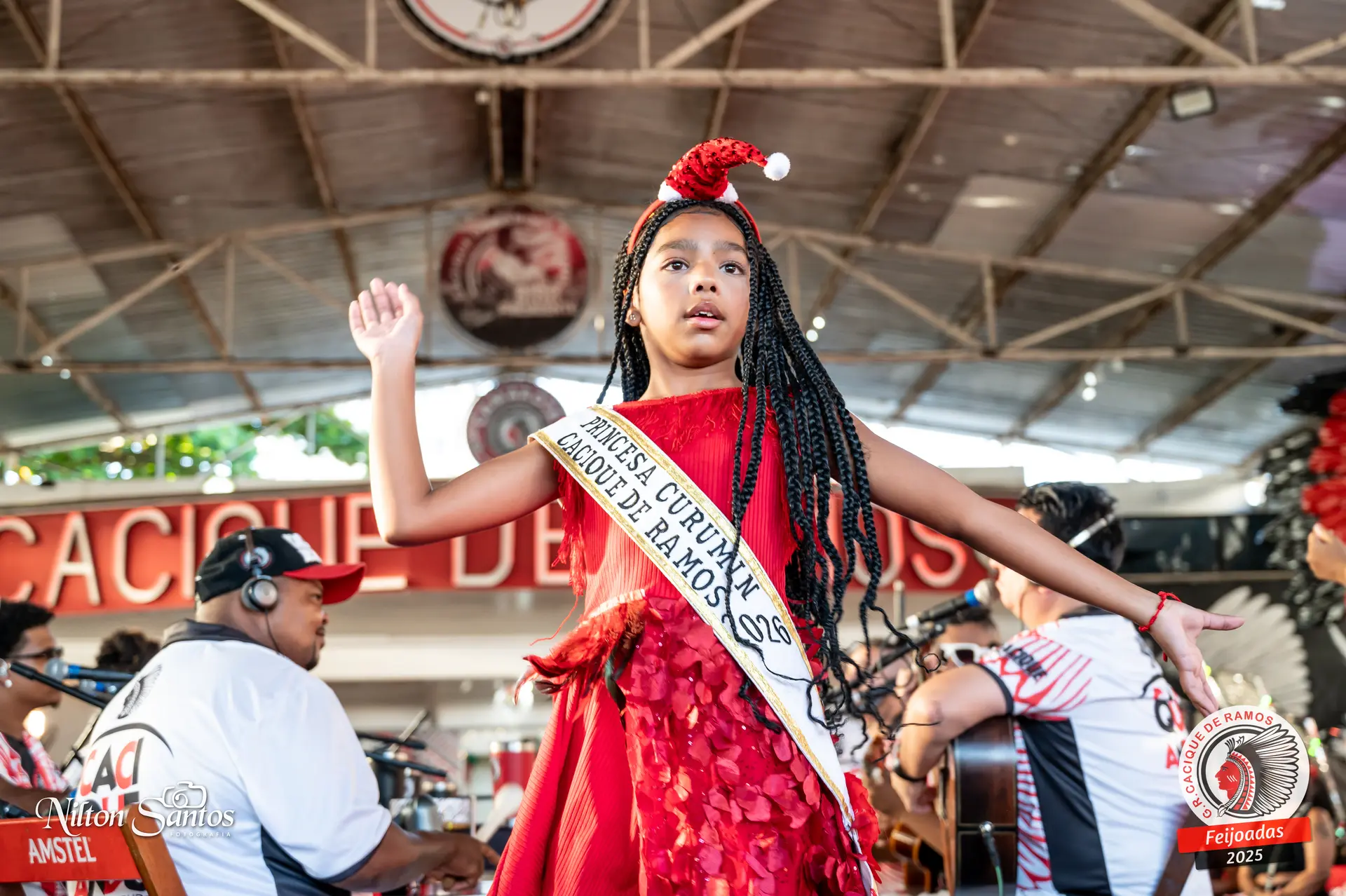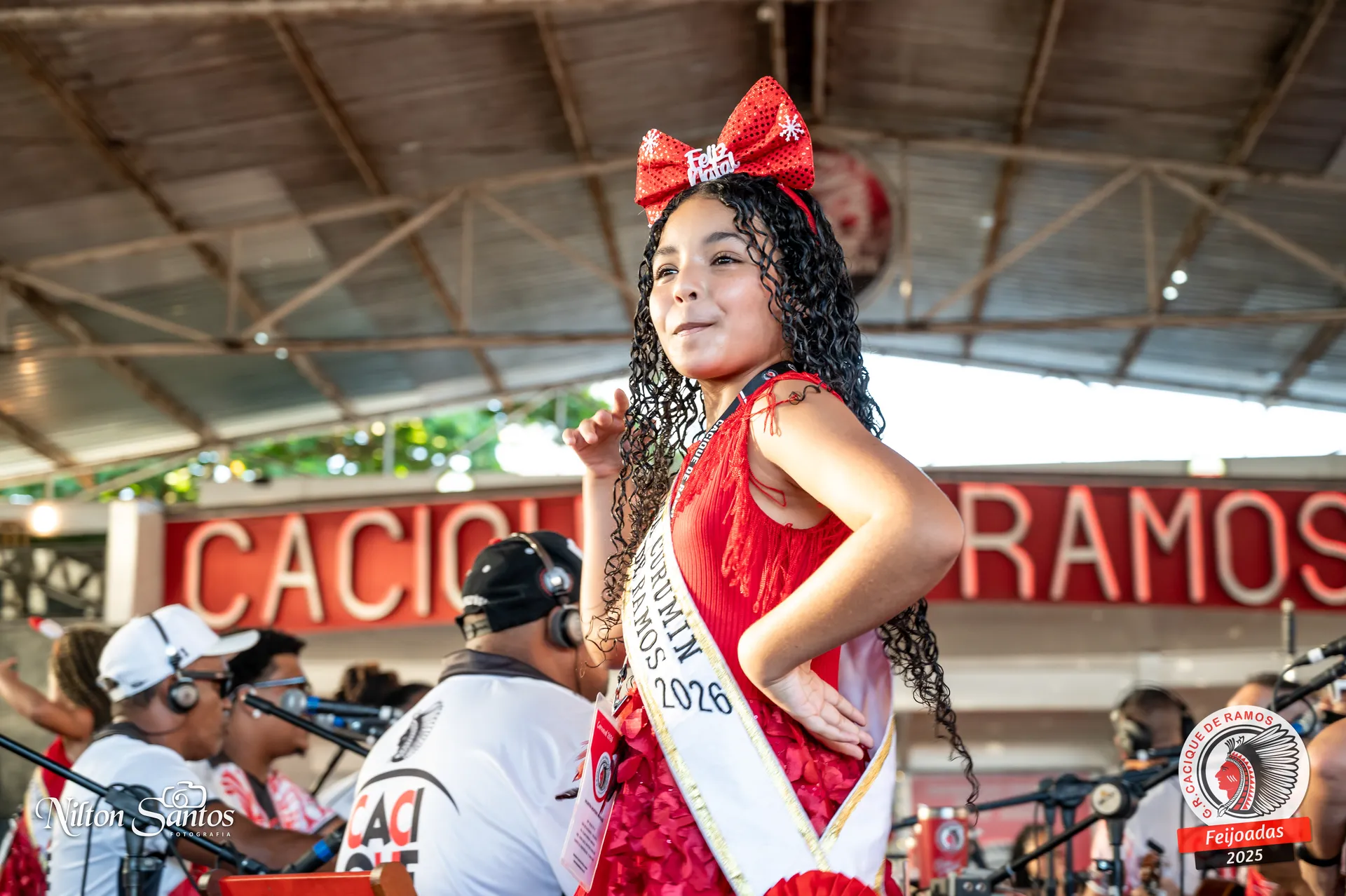 As palmas do público se estenderam à Corte Glória Caciqueana completa, que se vestiu de vermelho, conectando o evento ao feriado do Natal.