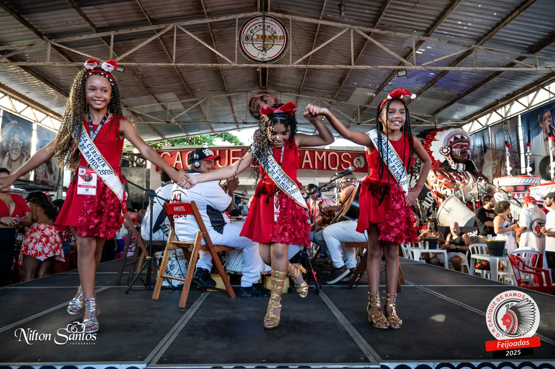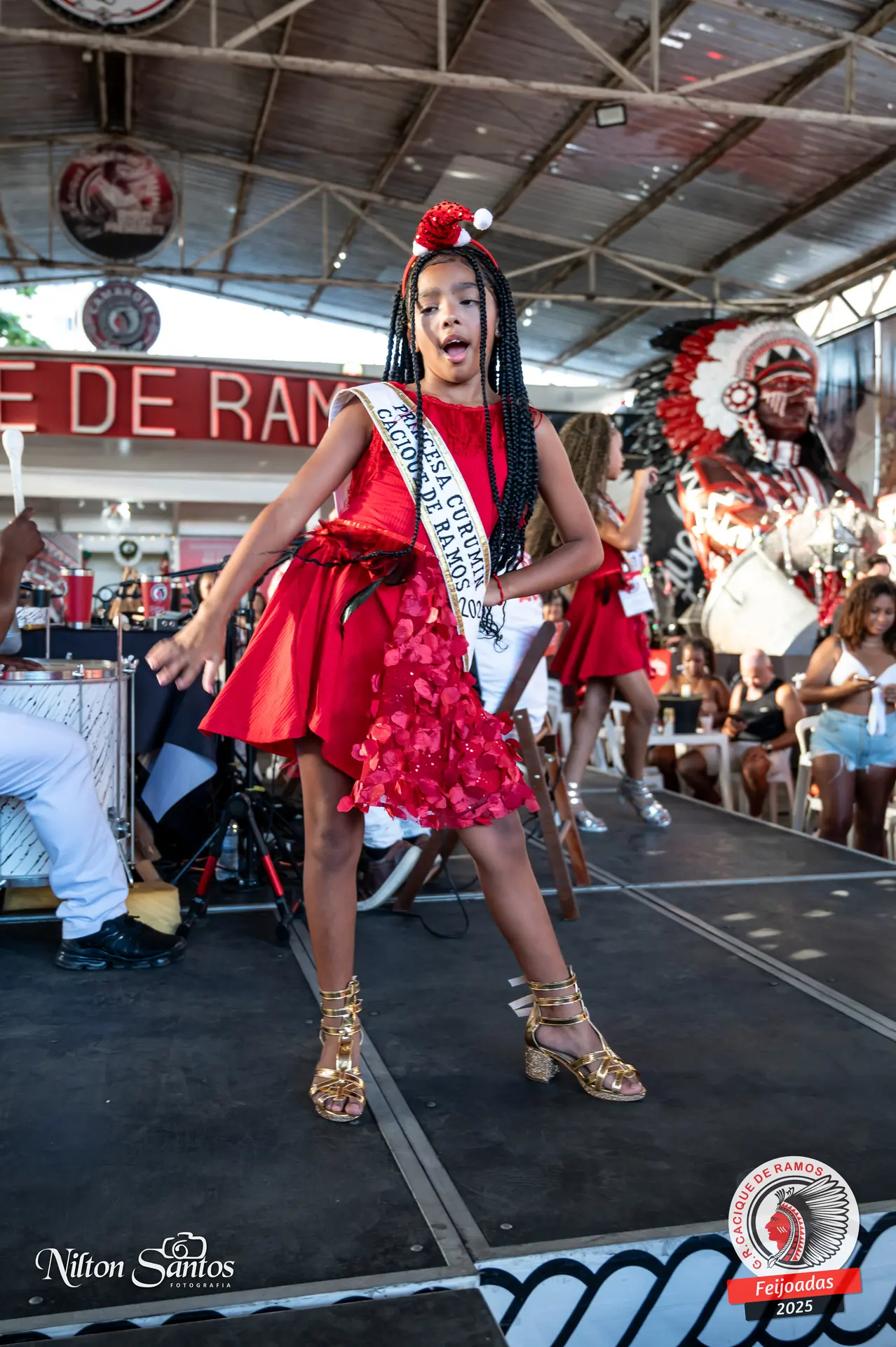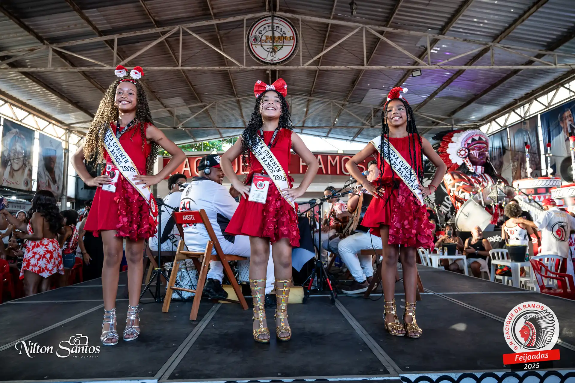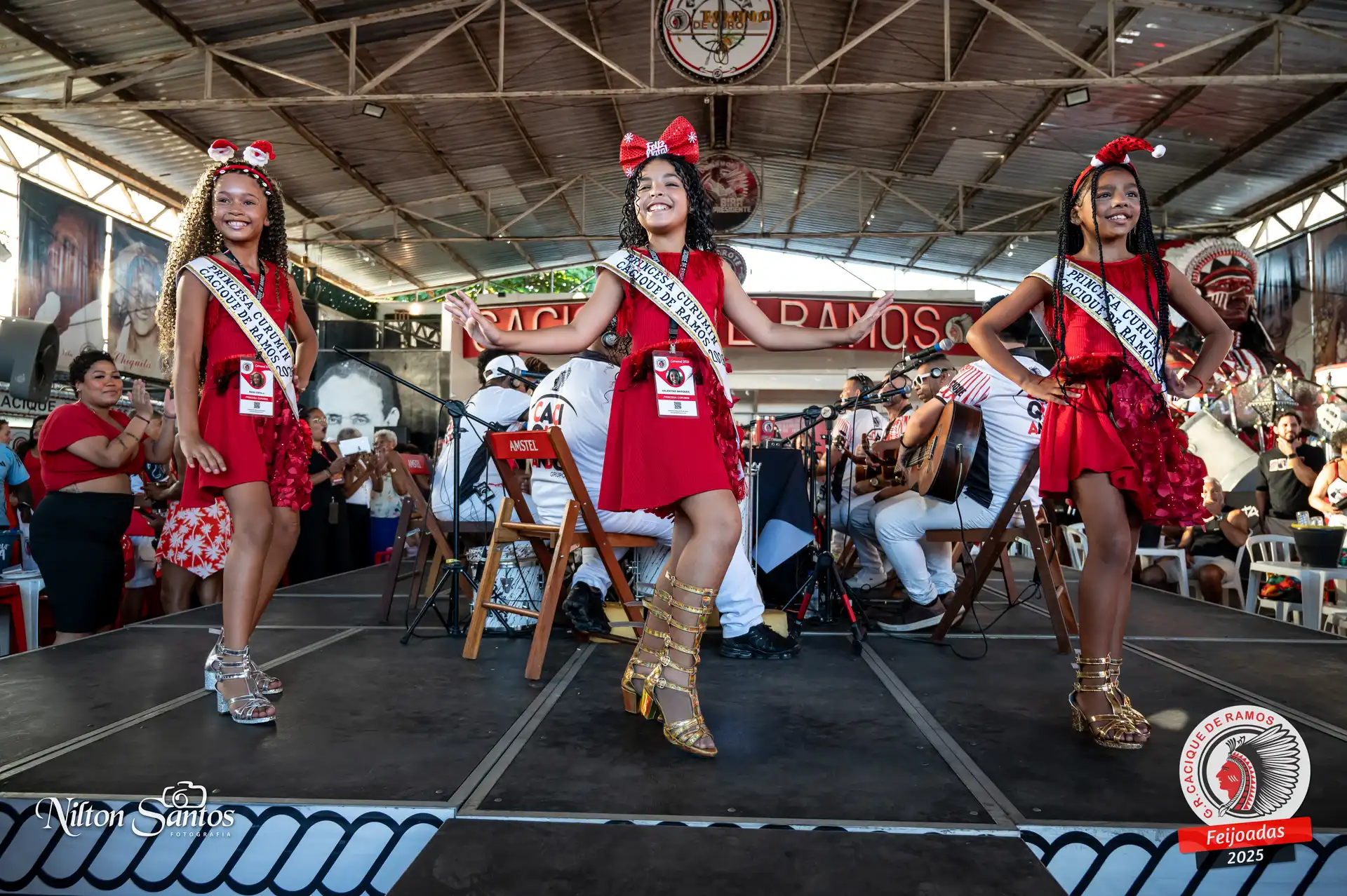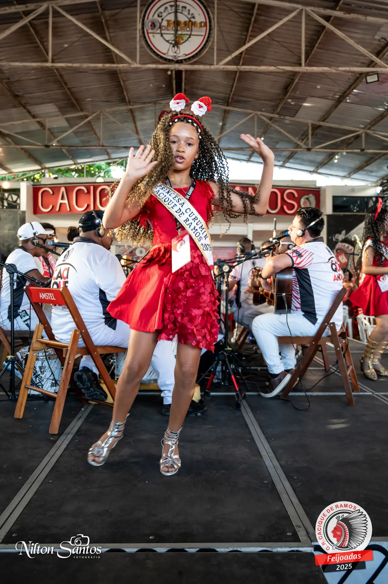 As palmas do público se estenderam à Corte Glória Caciqueana completa, que se vestiu de vermelho, conectando o evento ao feriado do Natal.