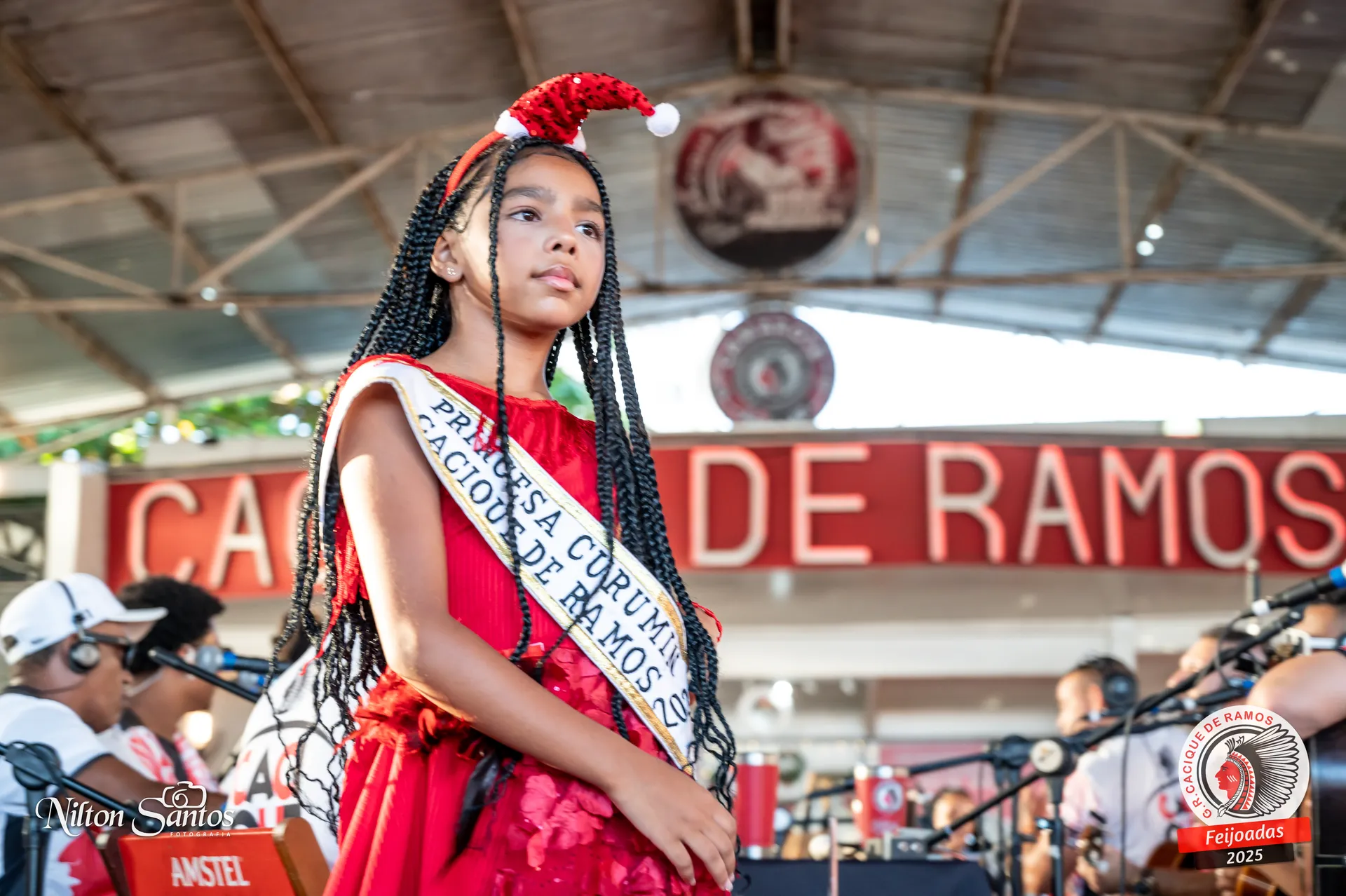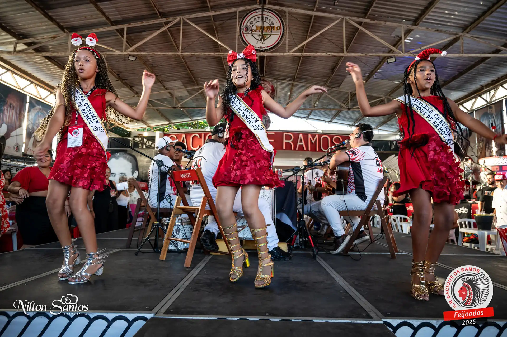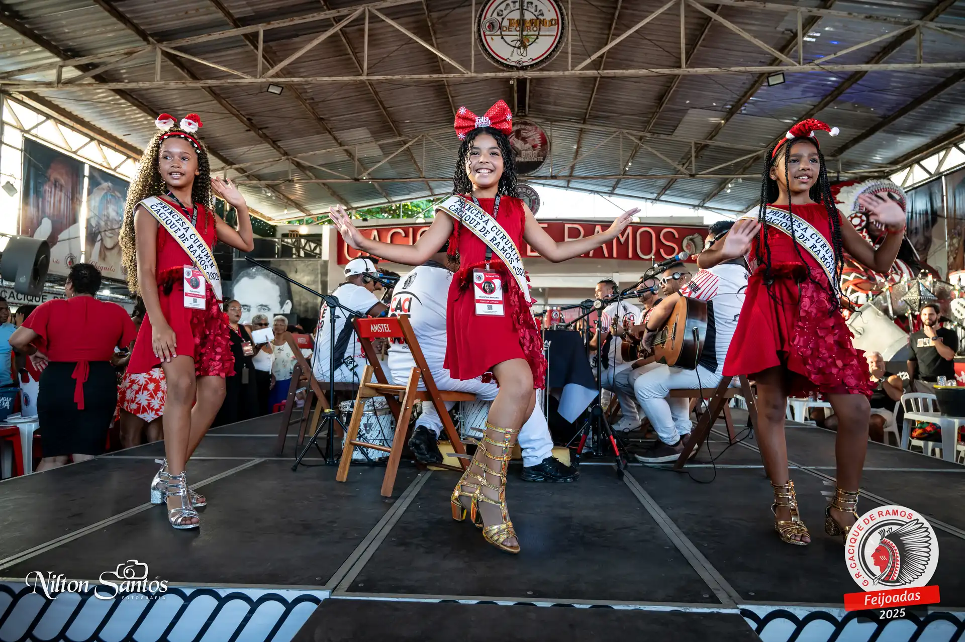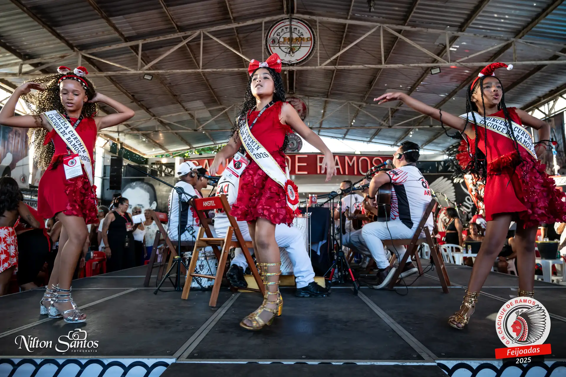 As palmas do público se estenderam à Corte Glória Caciqueana completa, que se vestiu de vermelho, conectando o evento ao feriado do Natal.