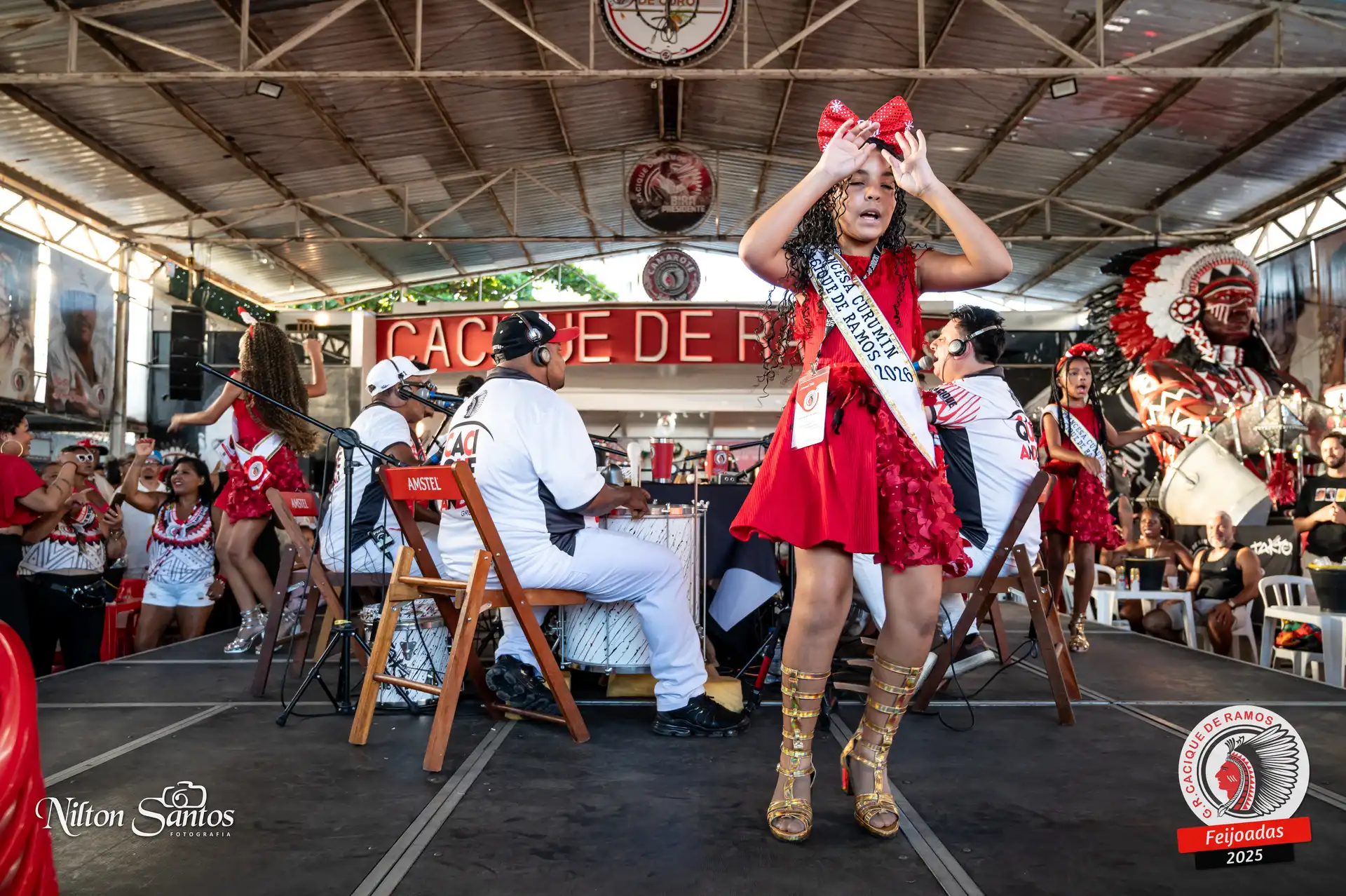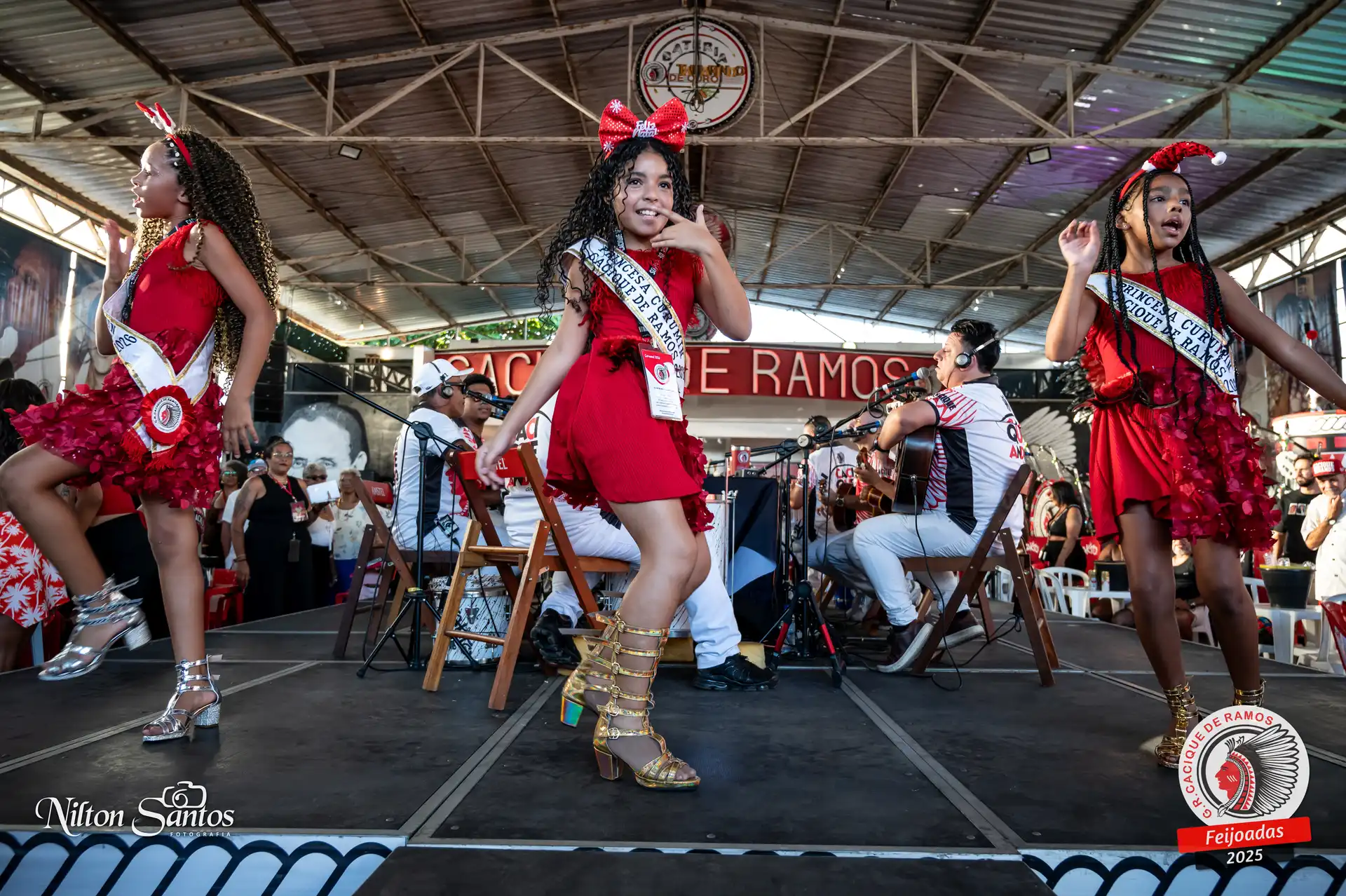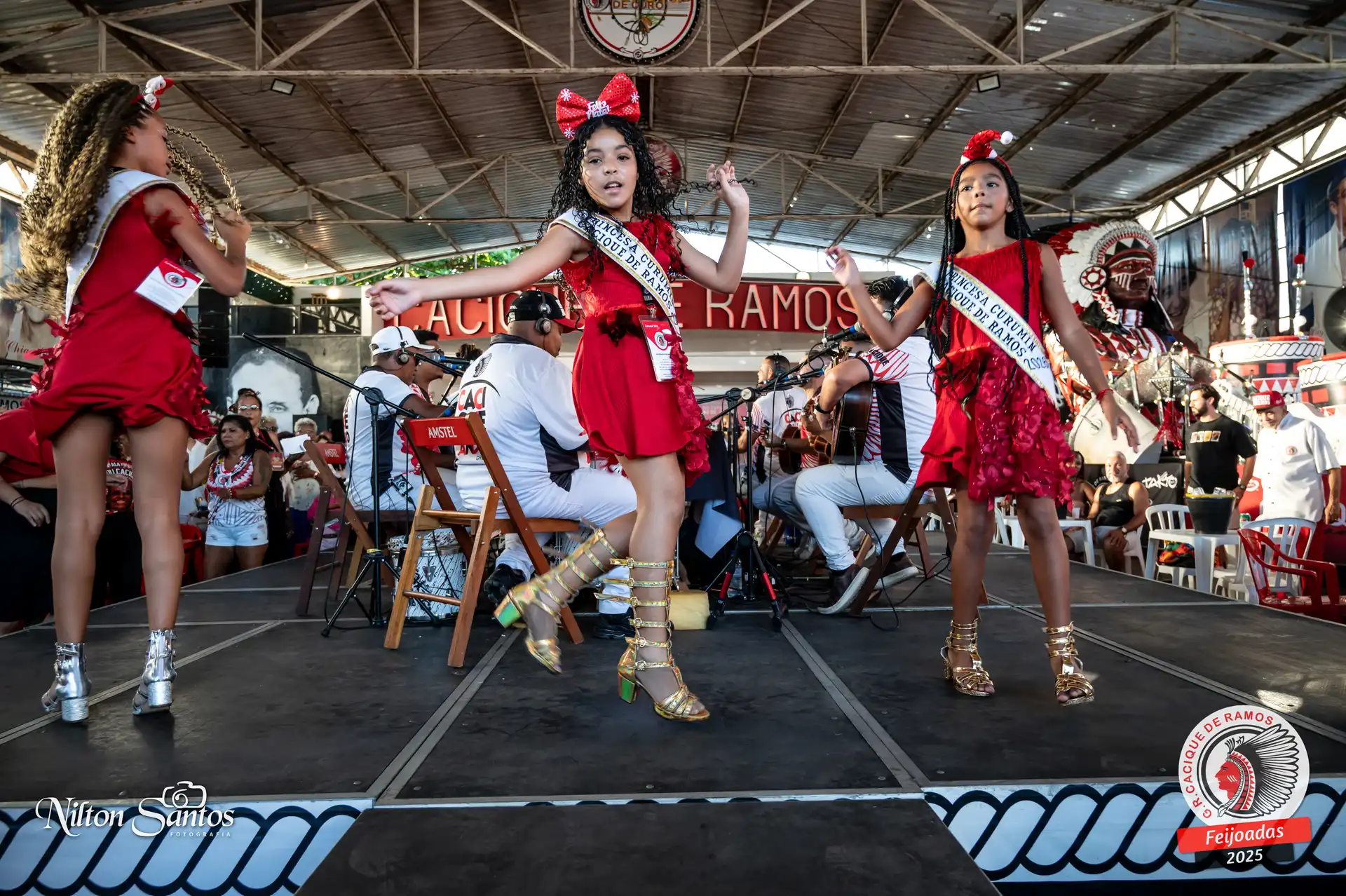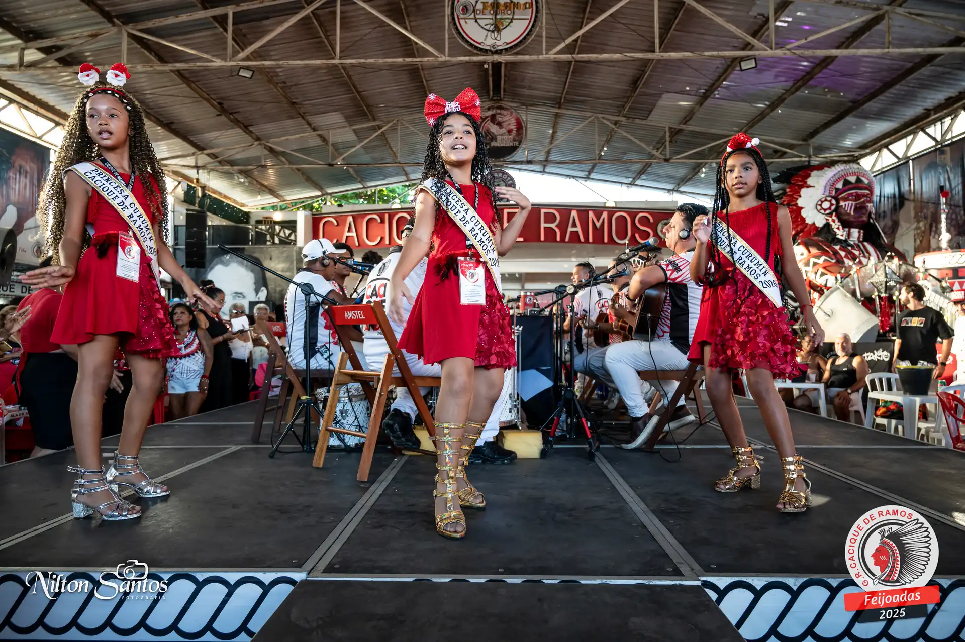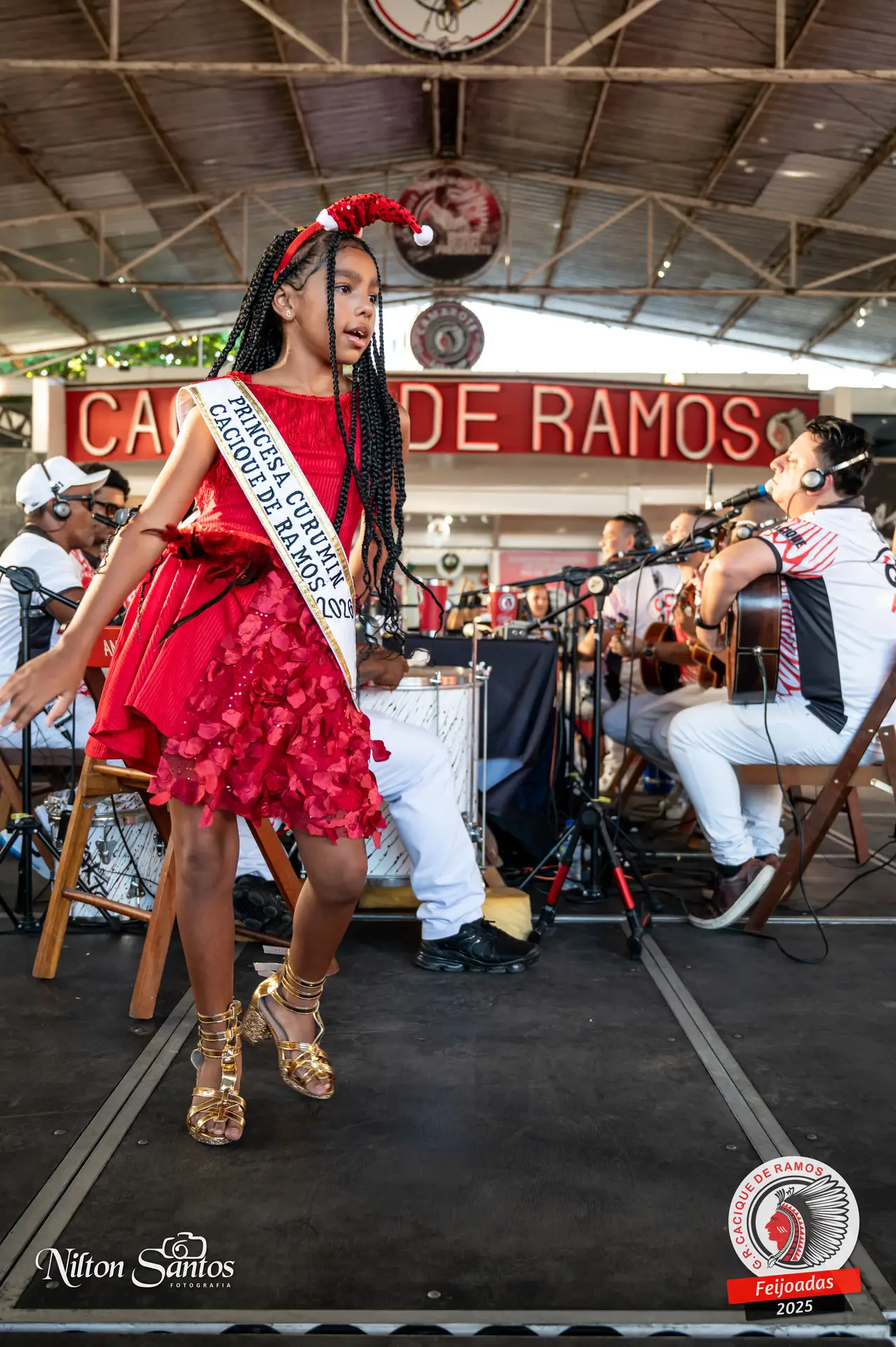 As palmas do público se estenderam à Corte Glória Caciqueana completa, que se vestiu de vermelho, conectando o evento ao feriado do Natal.