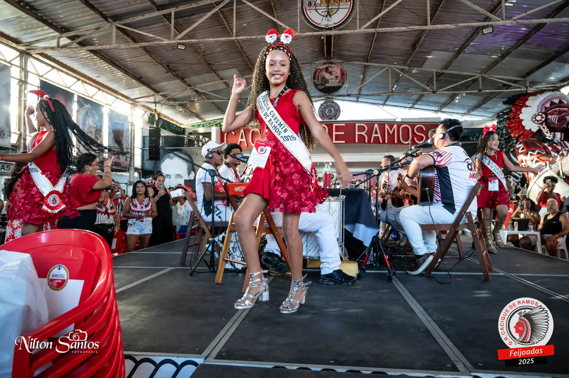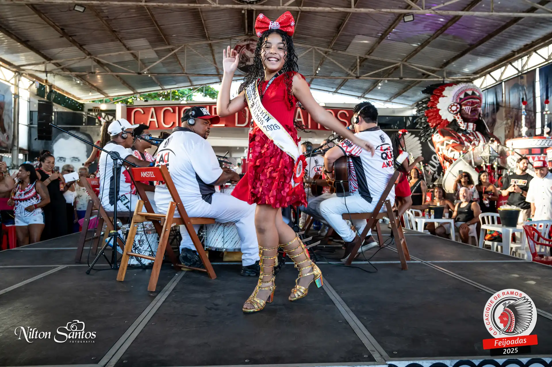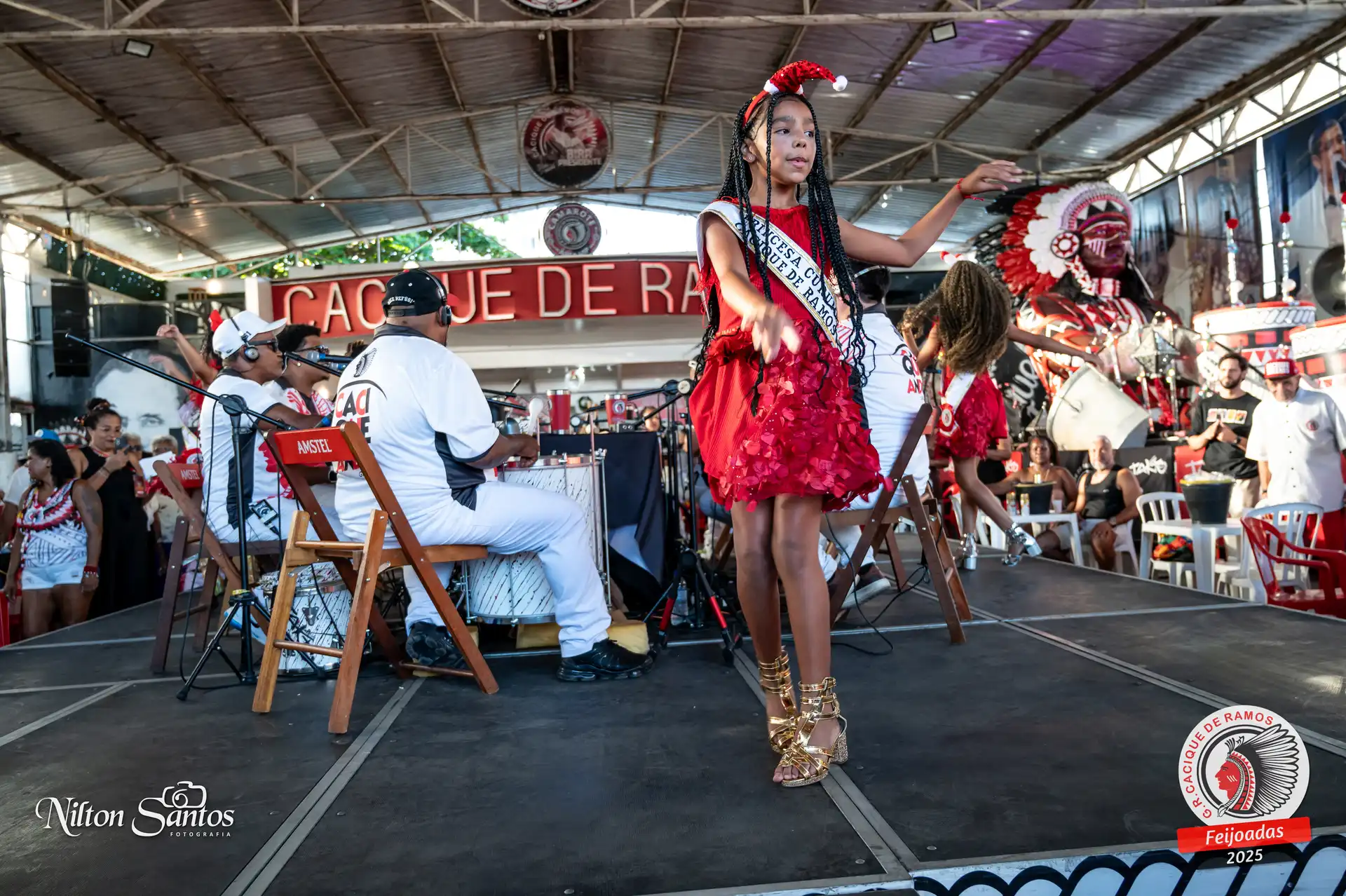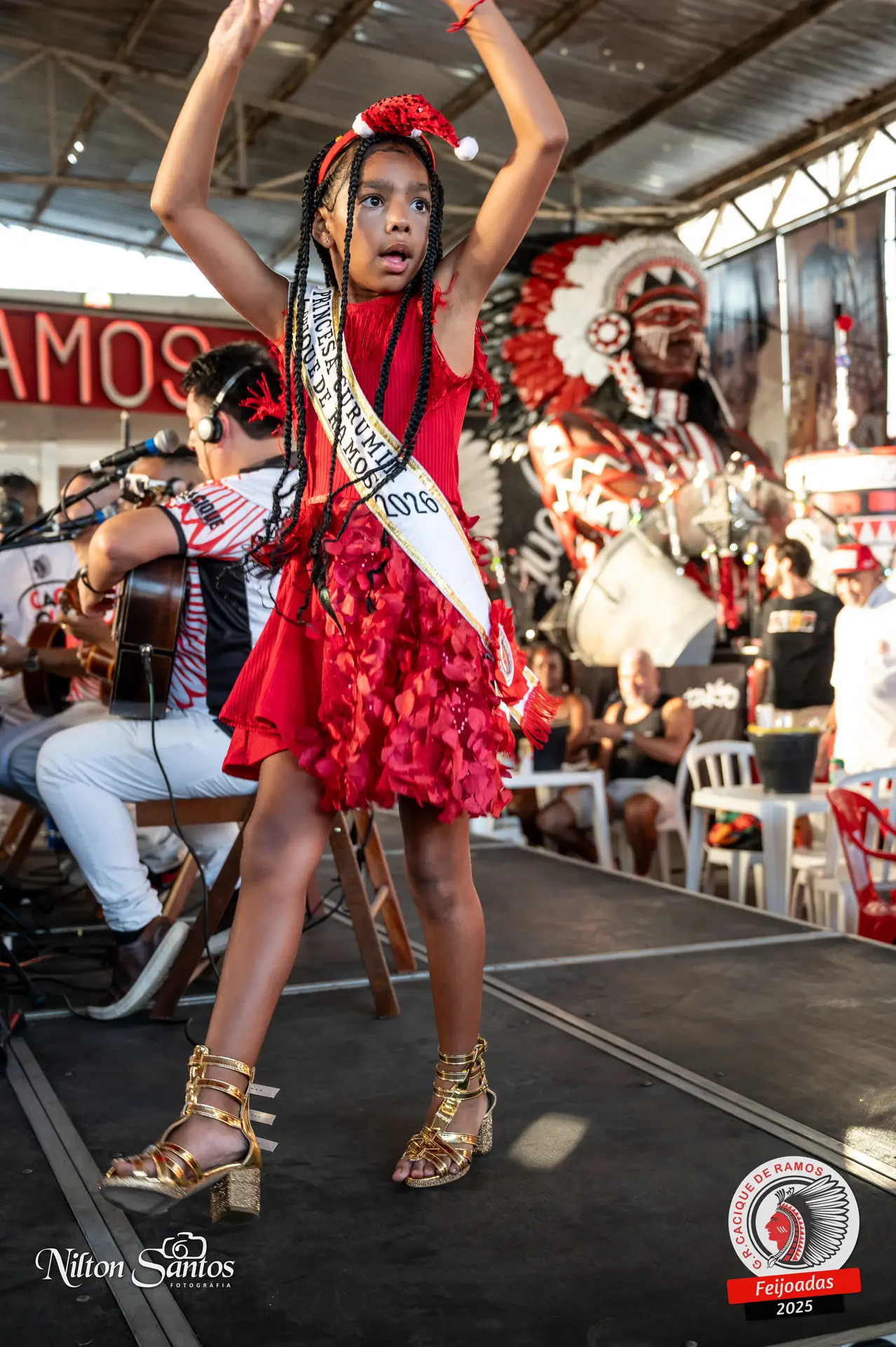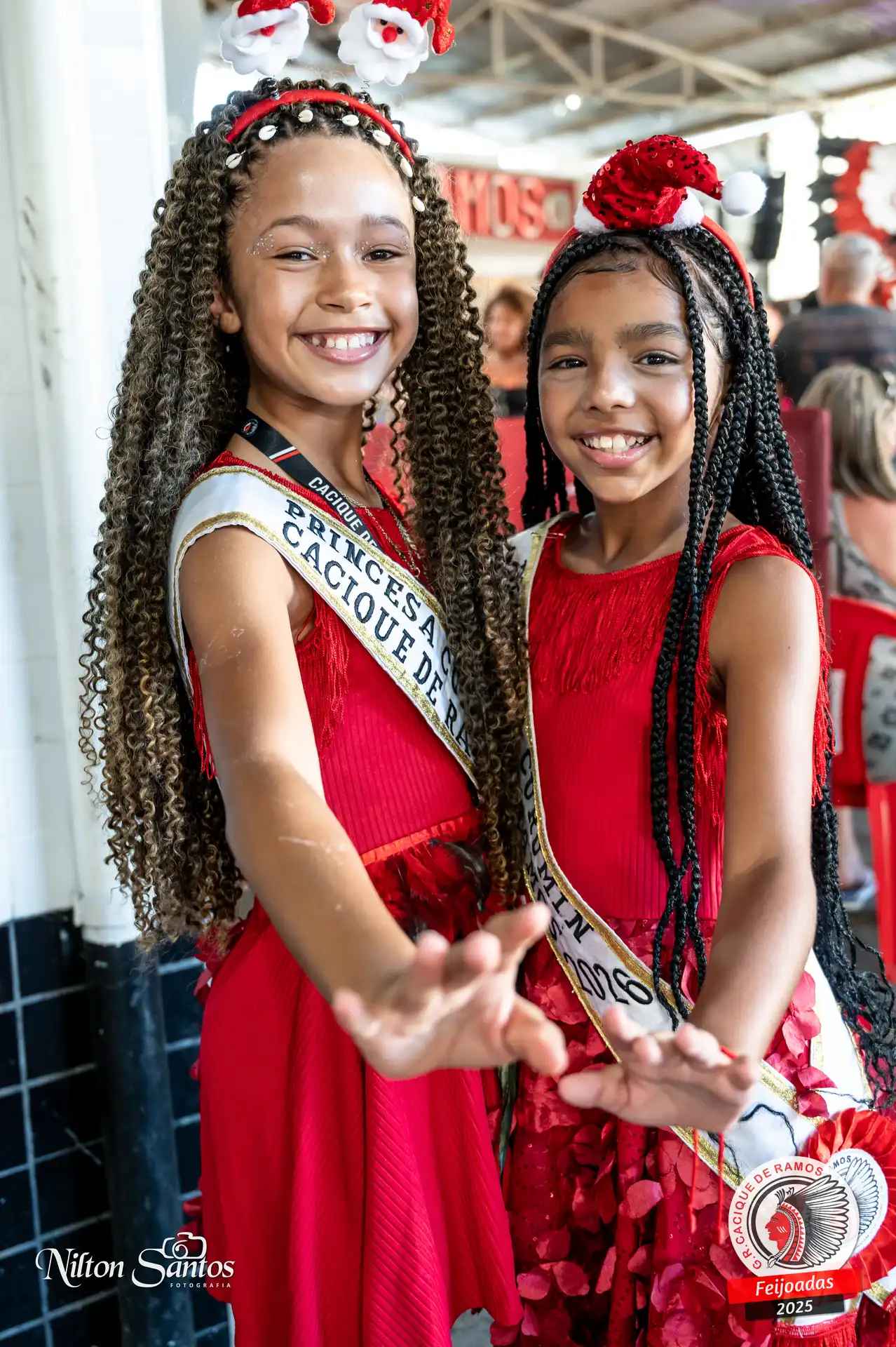 As palmas do público se estenderam à Corte Glória Caciqueana completa, que se vestiu de vermelho, conectando o evento ao feriado do Natal.