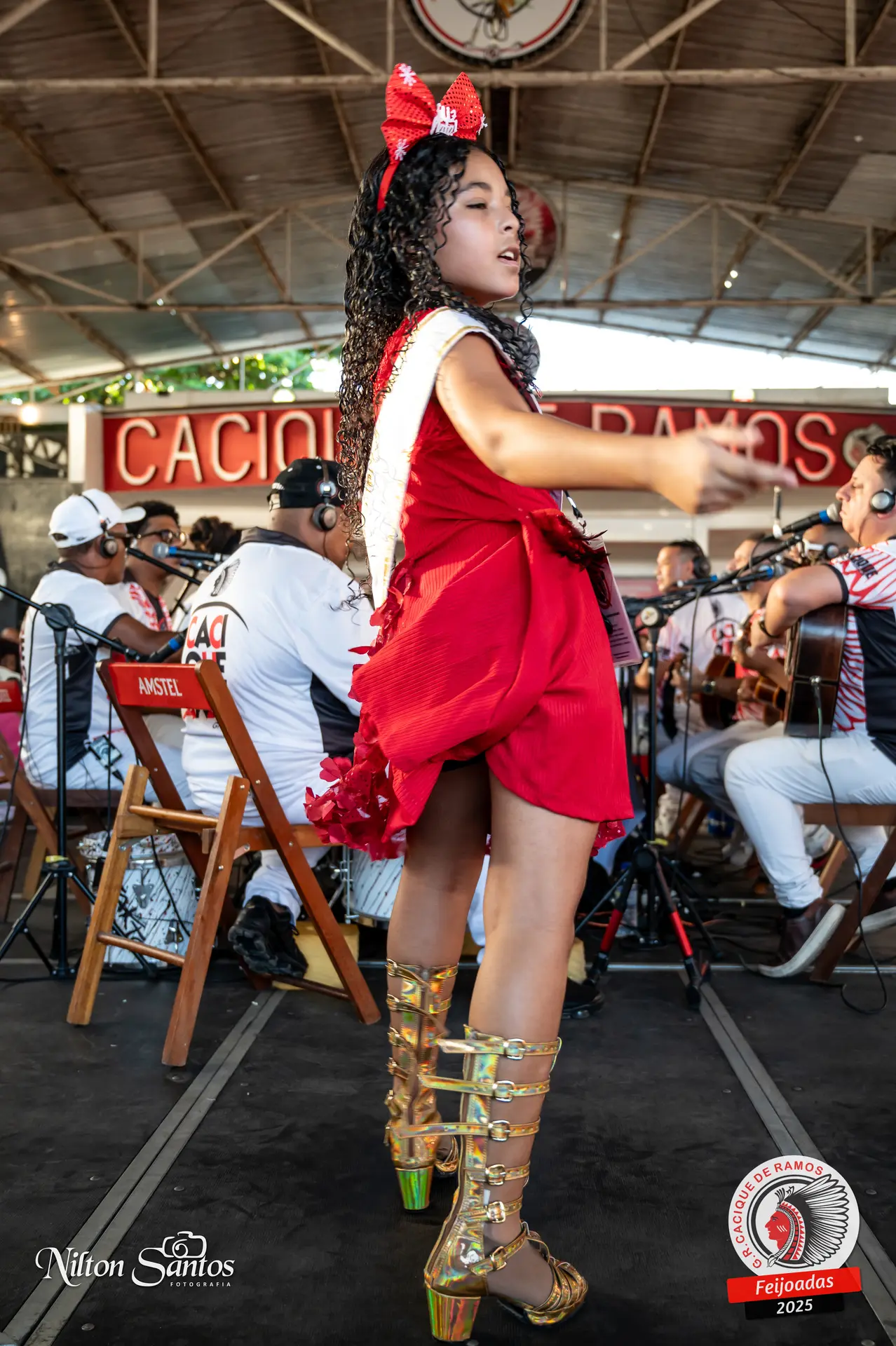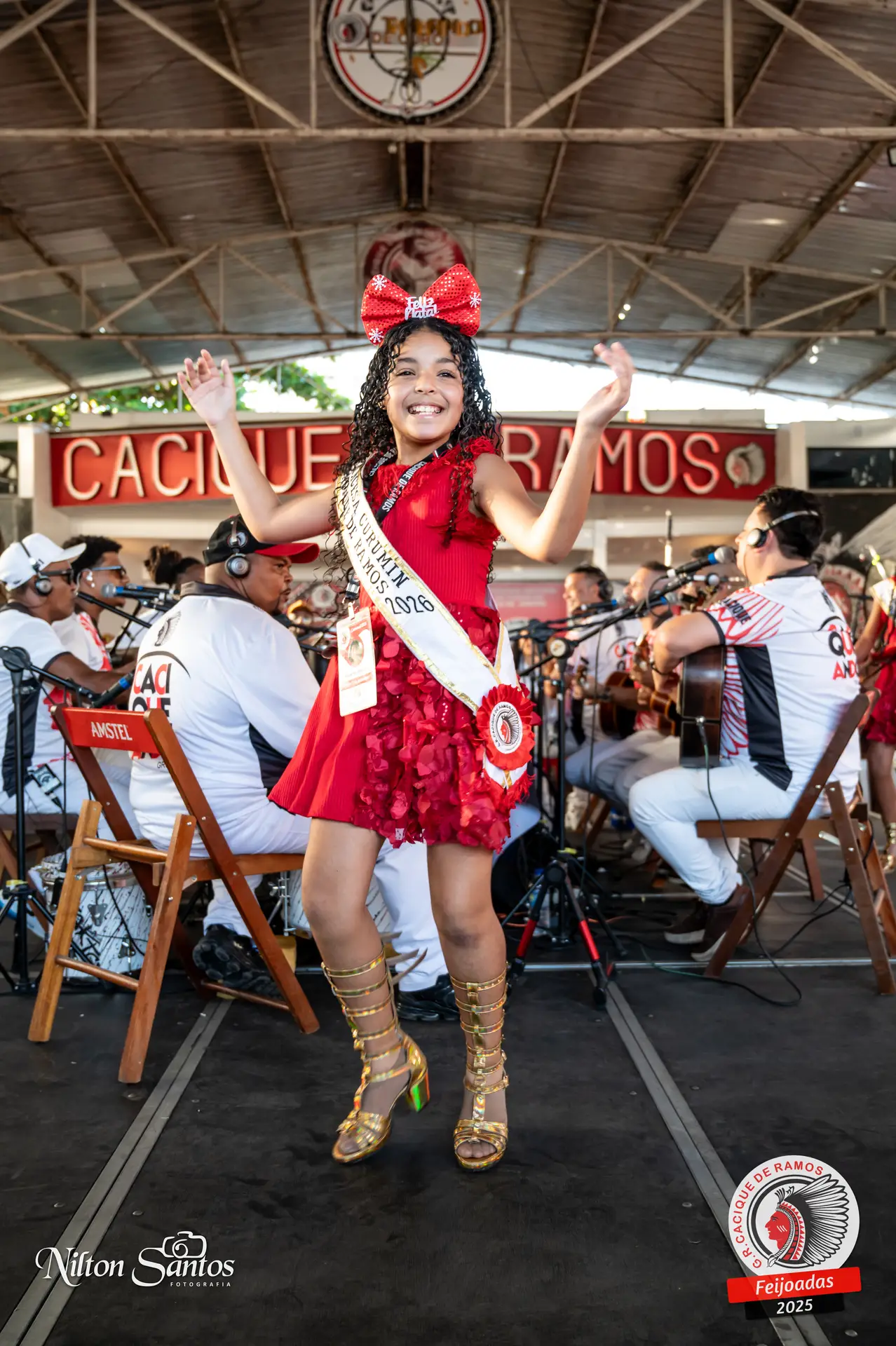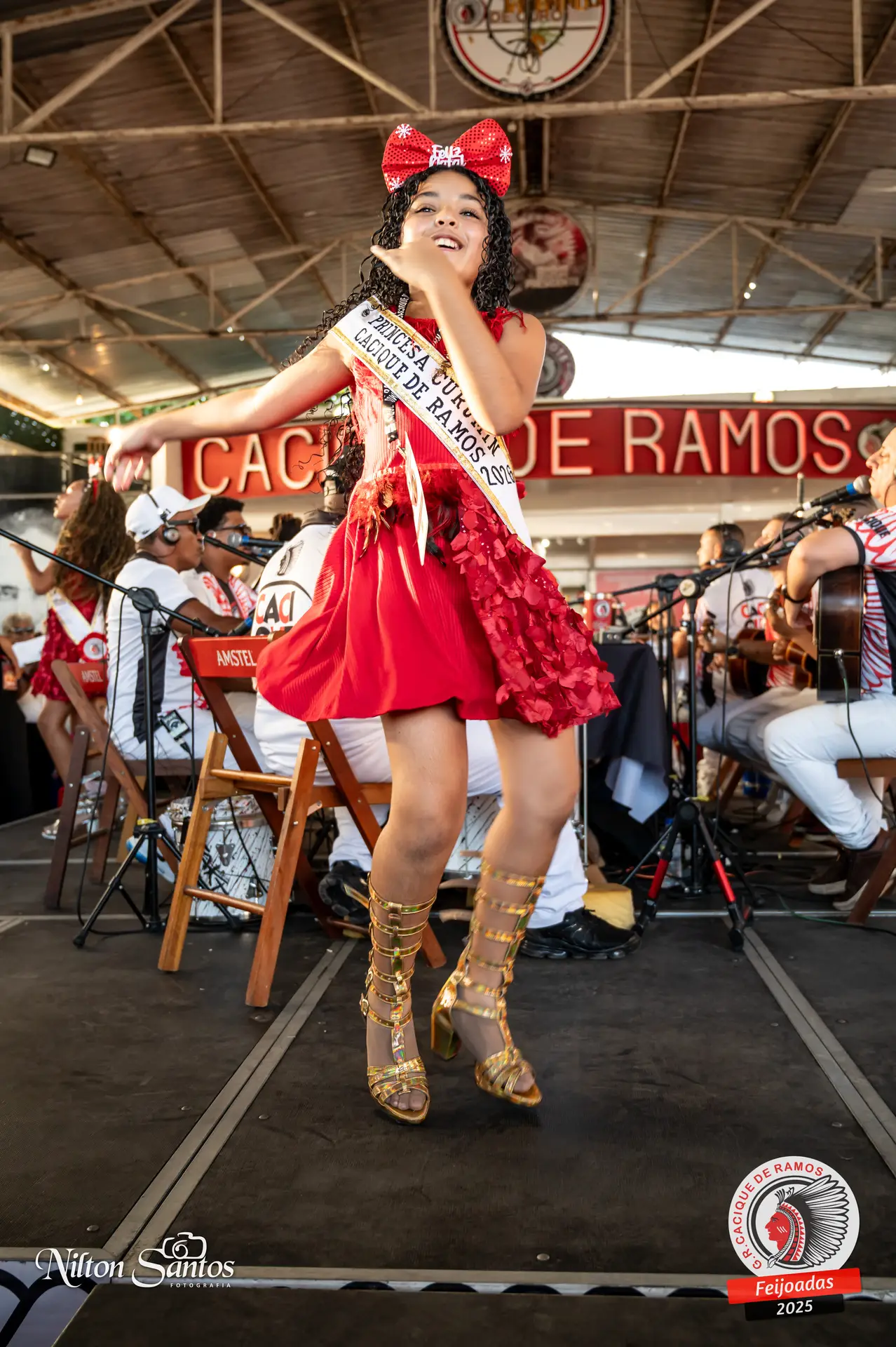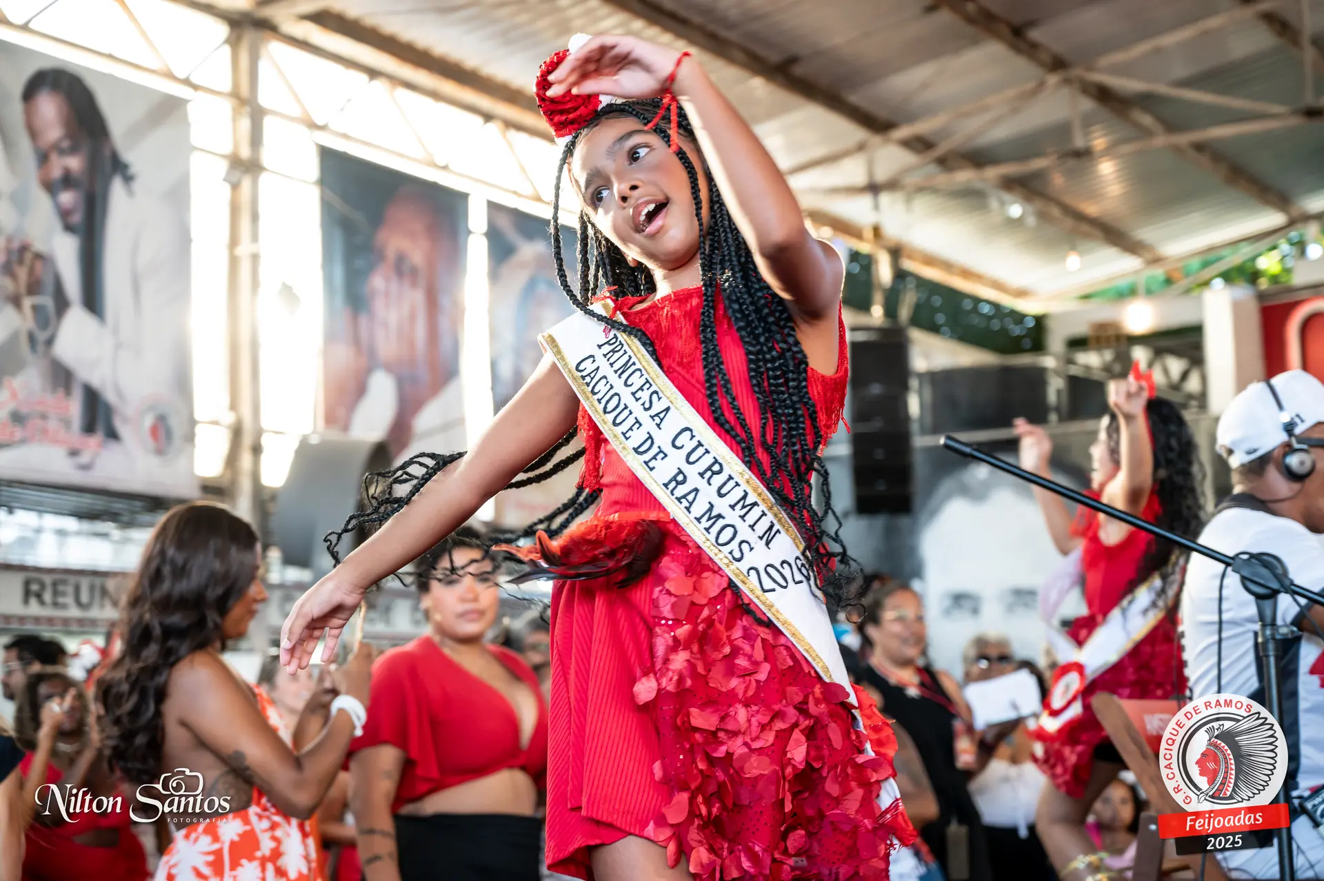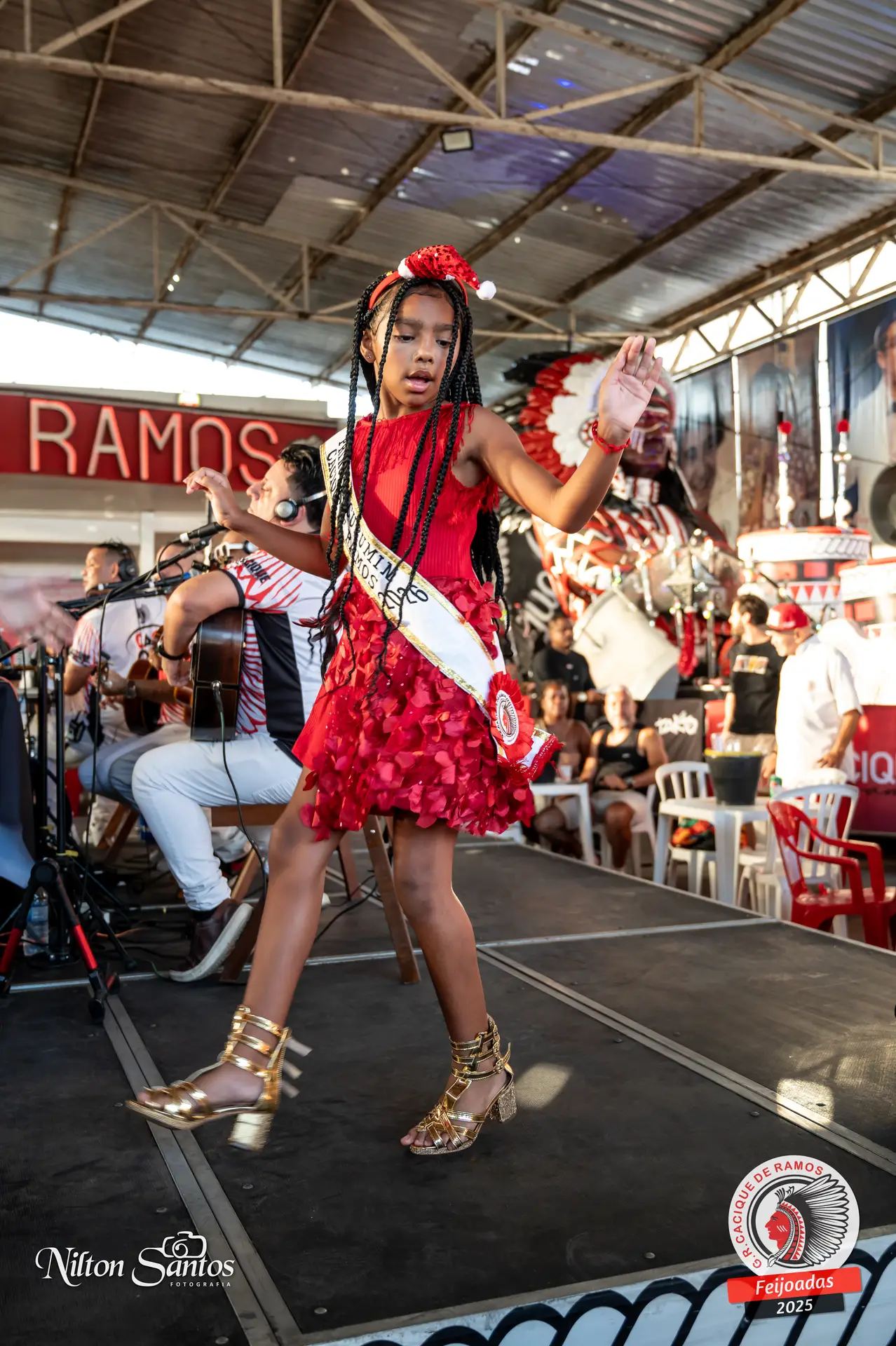 As palmas do público se estenderam à Corte Glória Caciqueana completa, que se vestiu de vermelho, conectando o evento ao feriado do Natal.