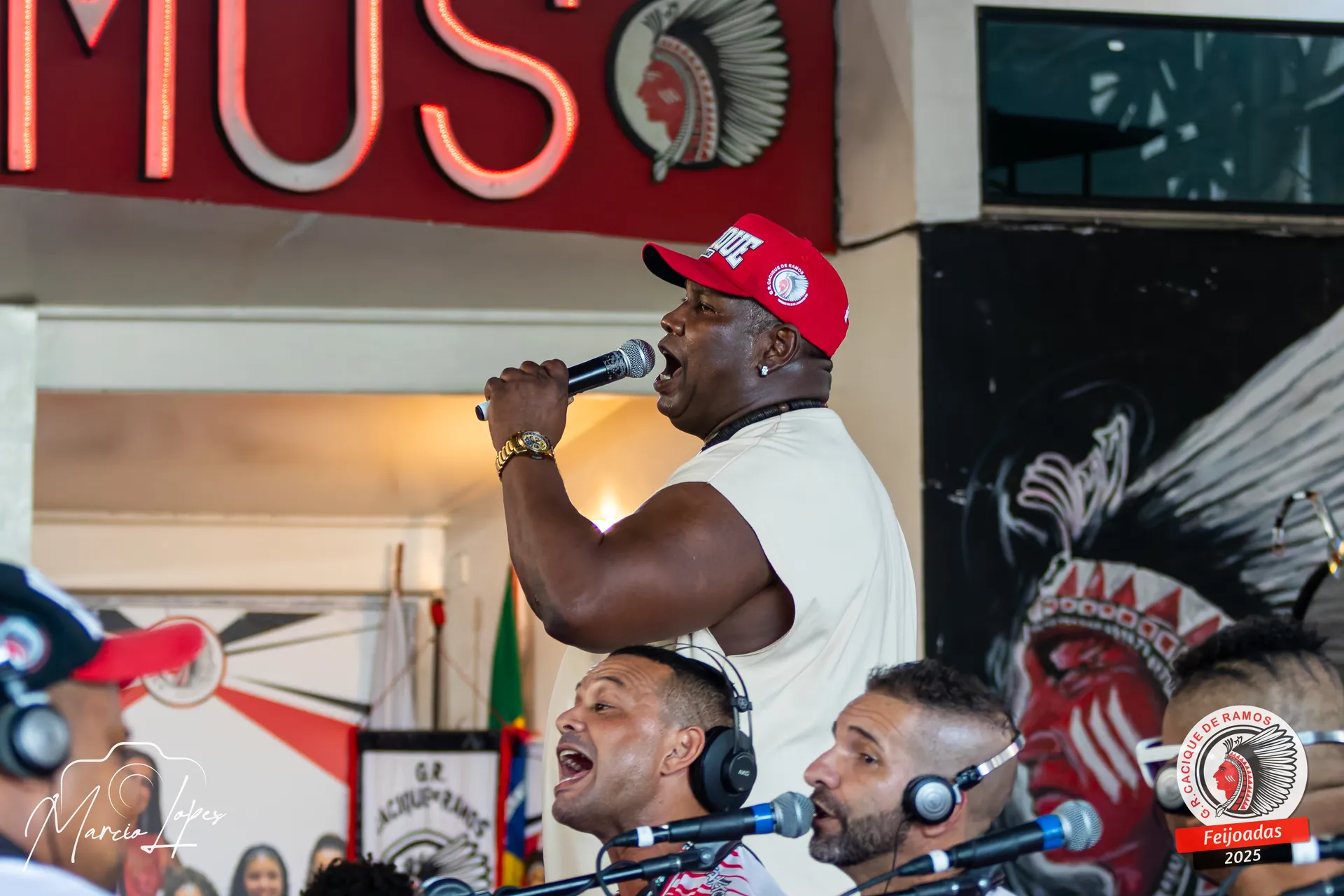 Na continuidade da programação, no telão, a final da Copa do Brasil aguçava ainda mais os sentidos de quem acompanhava a partida ao som de um bom partido-alto. O grupo Caciqueando passou então a recepcionar os convidados desta edição, como Andrezão, artista com longa trajetória ligada ao Cacique, que voltou ao lar cultural fundado por Bira Presidente. A participação especialíssima resultou na gravação de um audiovisual marcado por um repertório personificado, com raízes fincadas na tradição do samba autêntico, um convite perfeito para quem quer sambar.