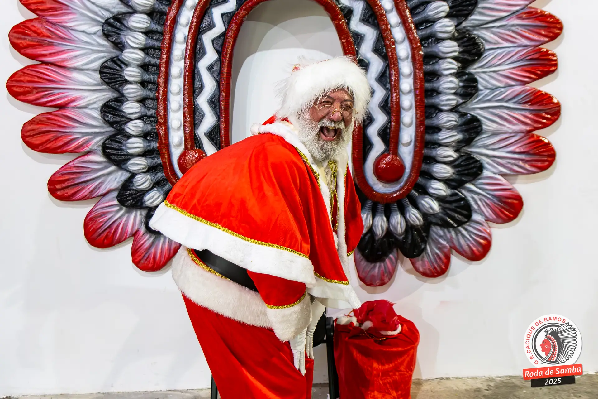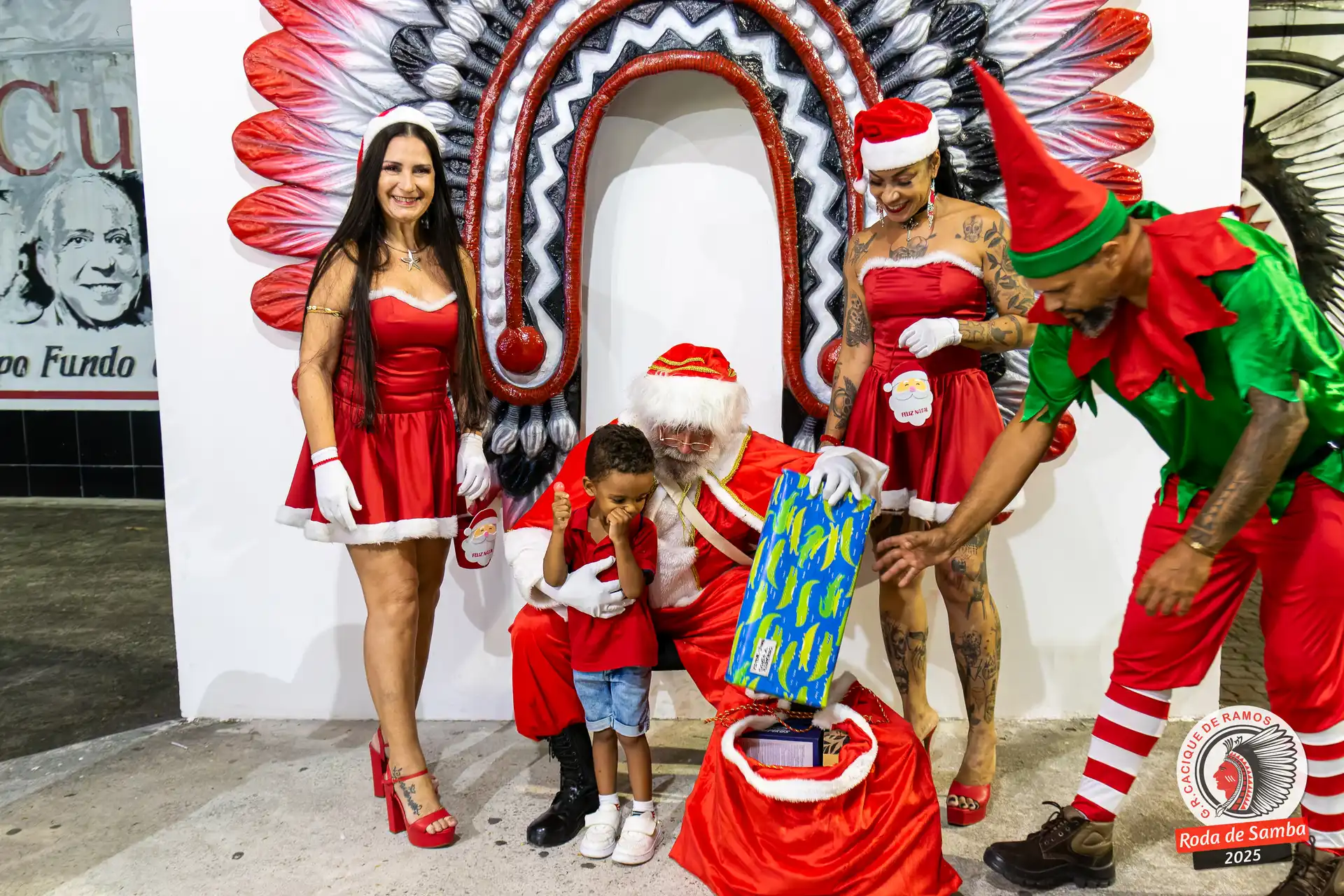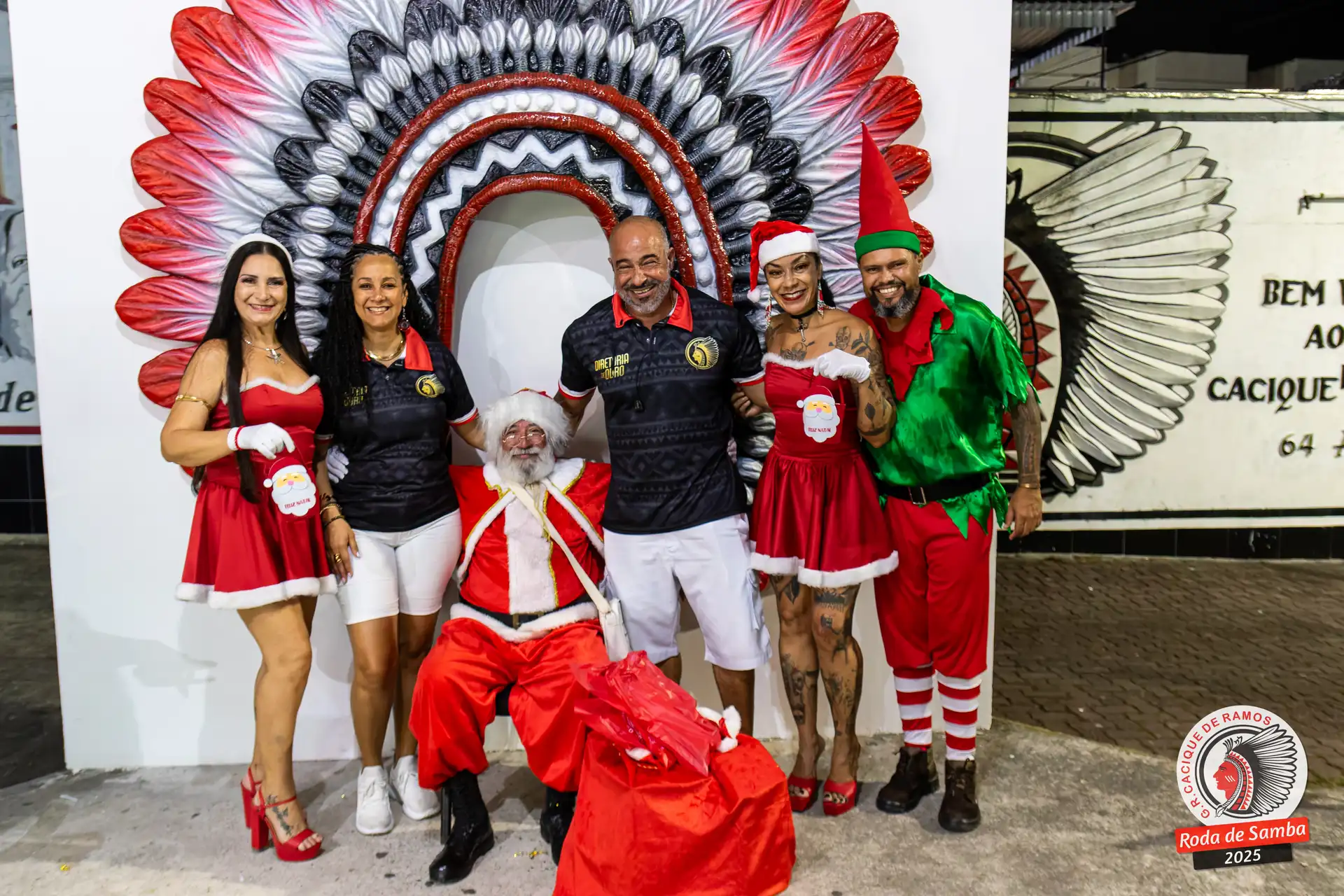 Quando o Cacique chama, a família responde e comparece em peso. Não foi diferente neste segundo domingo de dezembro, dia 14. Bem próximo ao período natalino, a instituição entrou na comemoração da Ala Eu Sou Cacique, que trouxe até componentes transfigurados nos personagens mais amados e representativos, como duendes, mamães Noel e, claro, o Papai Noel. O vice-presidente Márcio Nascimento colaborou com os integrantes da ala e providenciou presentes que foram distribuídos para as crianças, que se encantaram com a novidade.