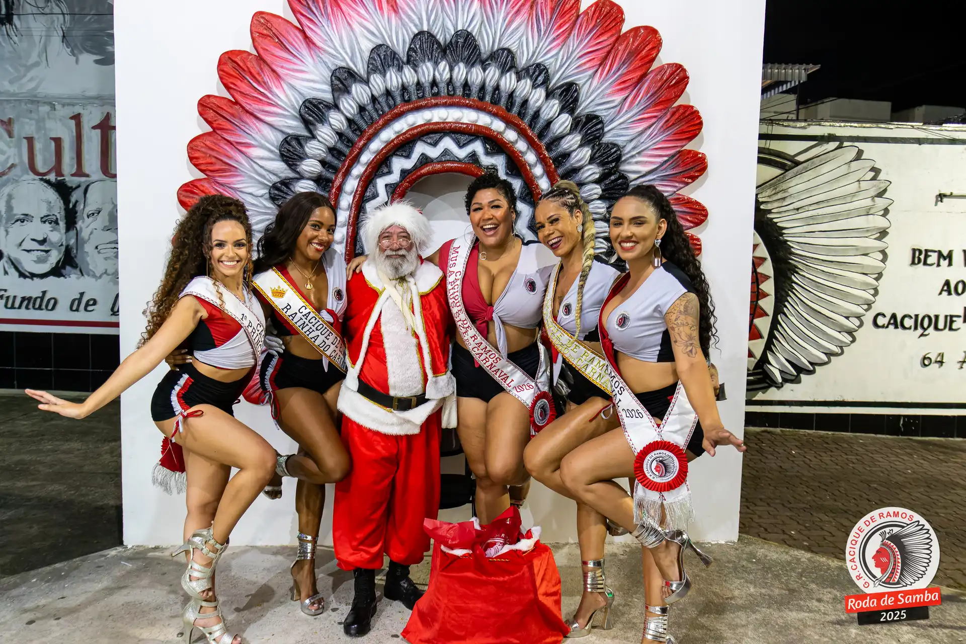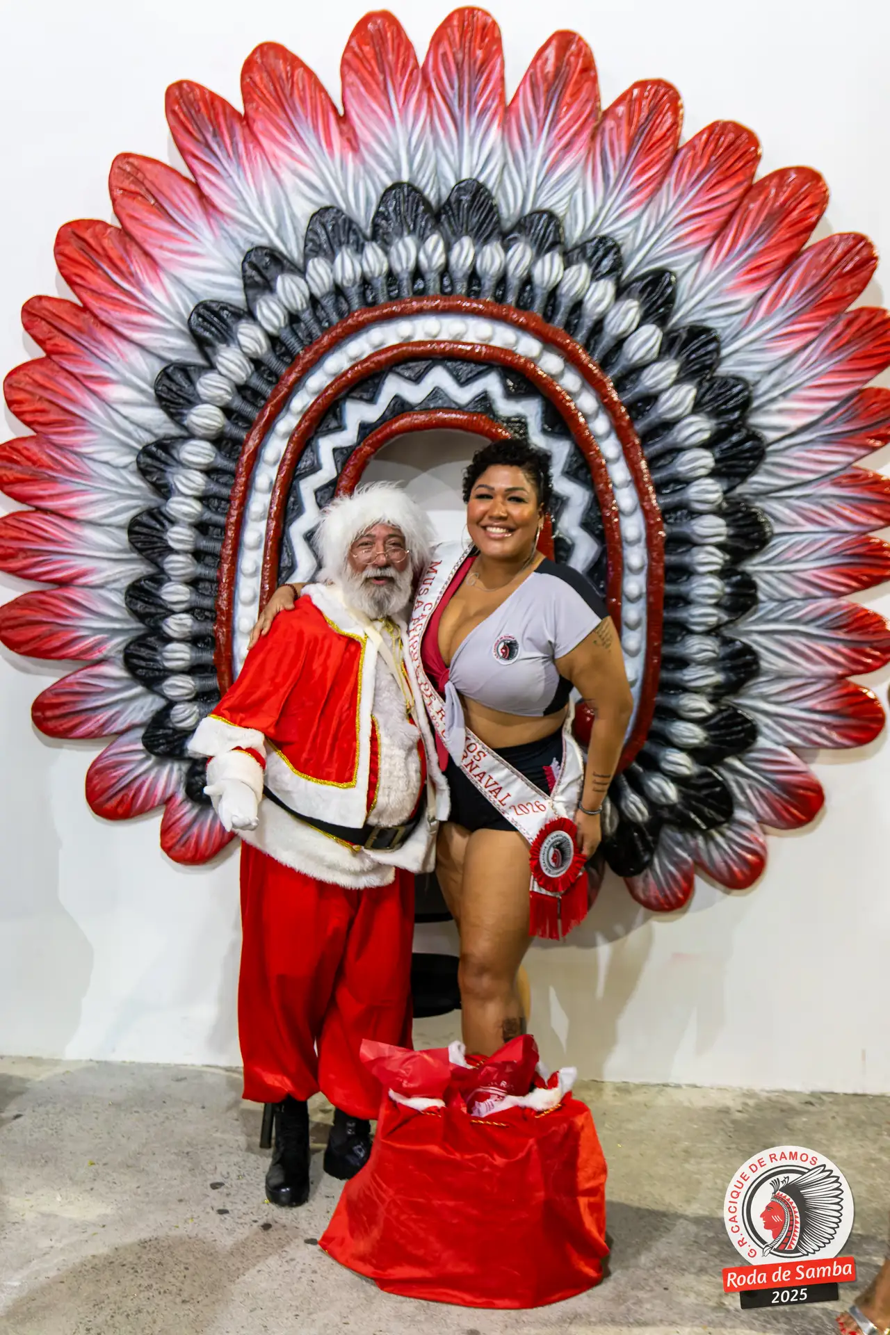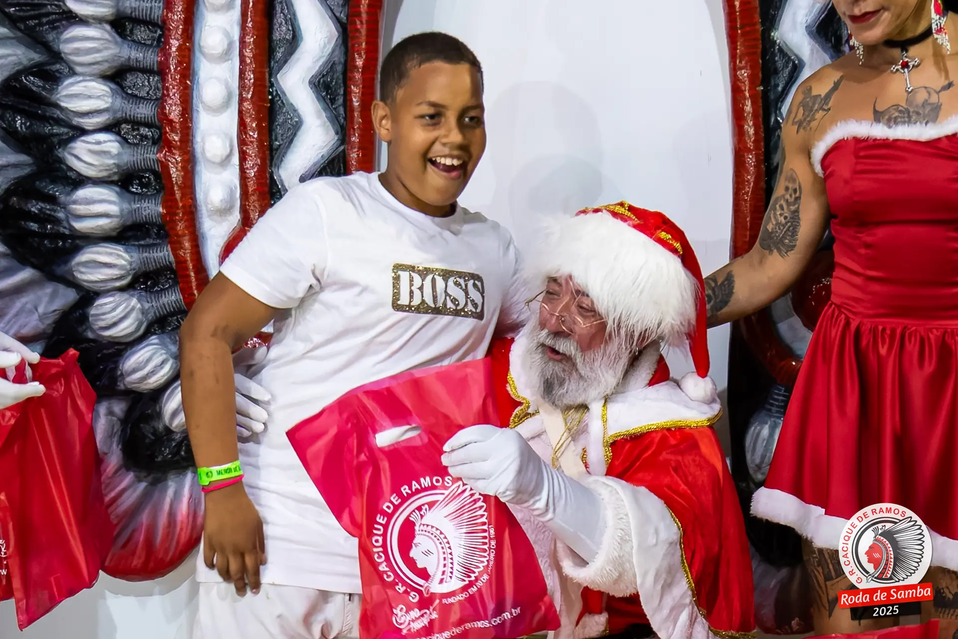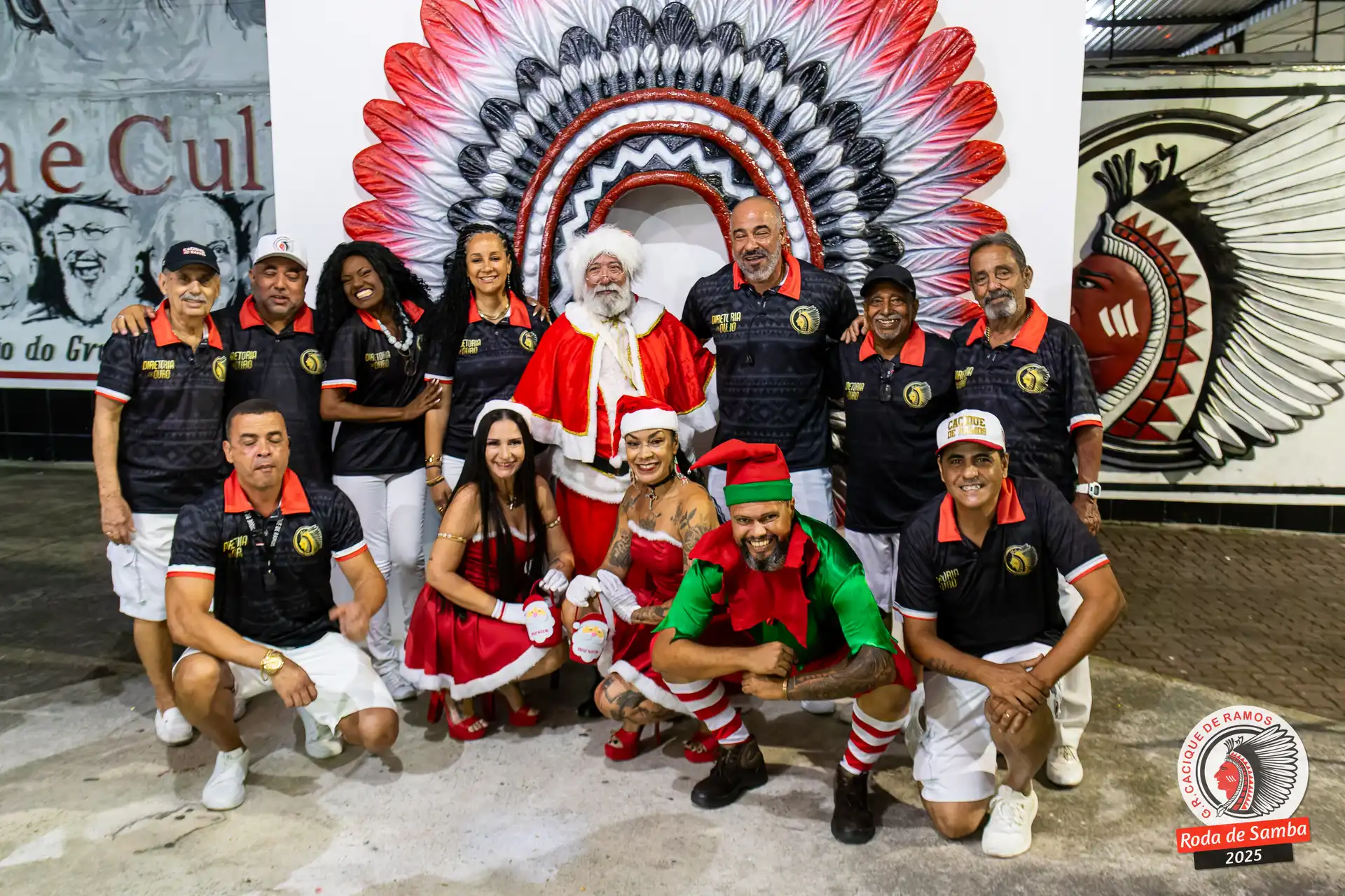 Quando o Cacique chama, a família responde e comparece em peso. Não foi diferente neste segundo domingo de dezembro, dia 14. Bem próximo ao período natalino, a instituição entrou na comemoração da Ala Eu Sou Cacique, que trouxe até componentes transfigurados nos personagens mais amados e representativos, como duendes, mamães Noel e, claro, o Papai Noel. O vice-presidente Márcio Nascimento colaborou com os integrantes da ala e providenciou presentes que foram distribuídos para as crianças, que se encantaram com a novidade.